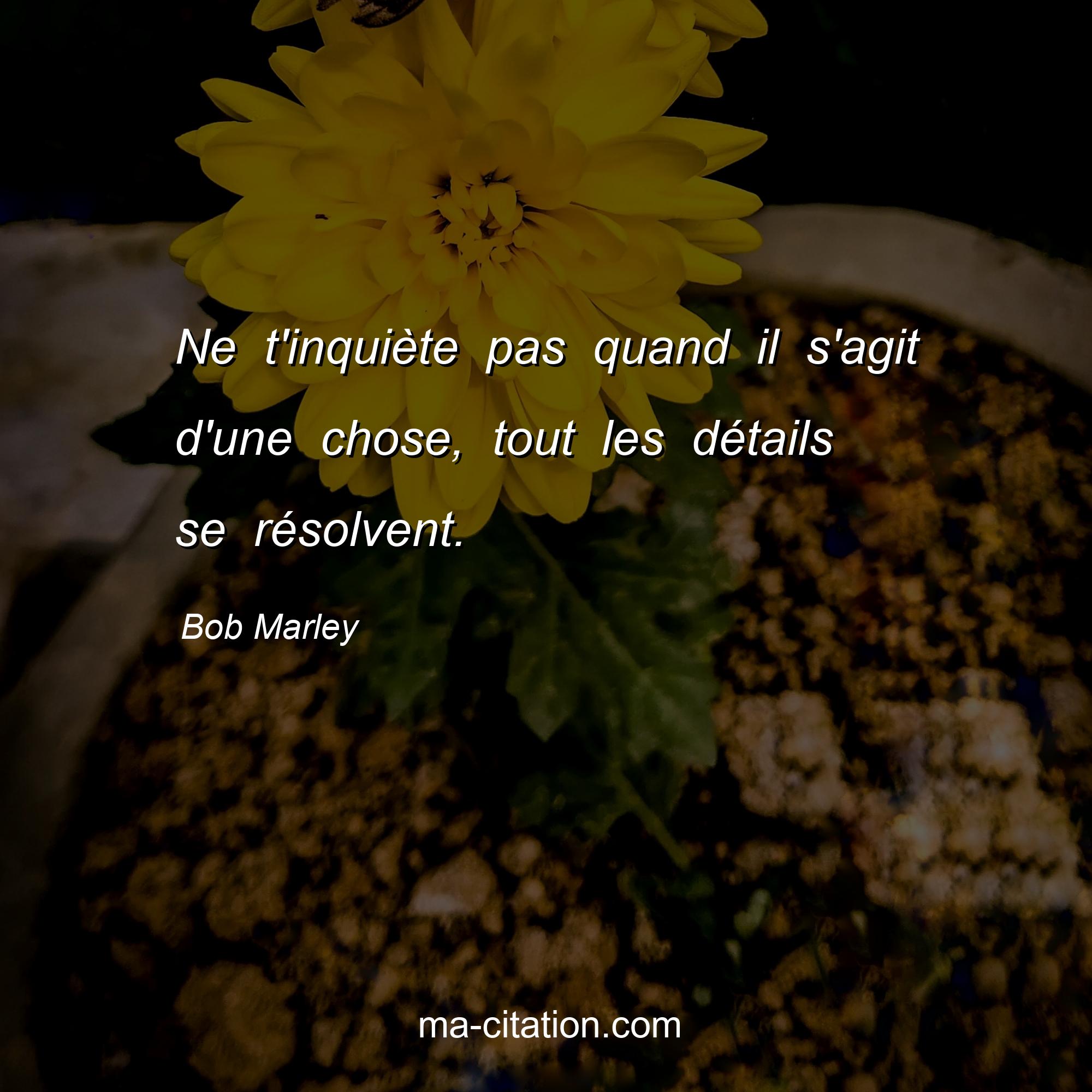 Bob Marley est l'auteur de la citation sur la vie "Ne t'inquiète pas quand il s'agit d'une chose, tout les détails se résolvent.".