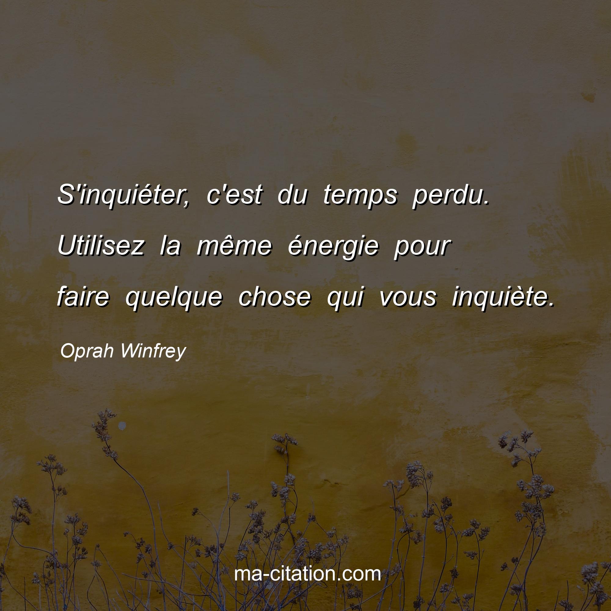 Citation sur la vie d'Oprah Winfrey :S'inquiéter, c'est du temps perdu. Utilisez la même énergie pour faire quelque chose qui vous inquiète.