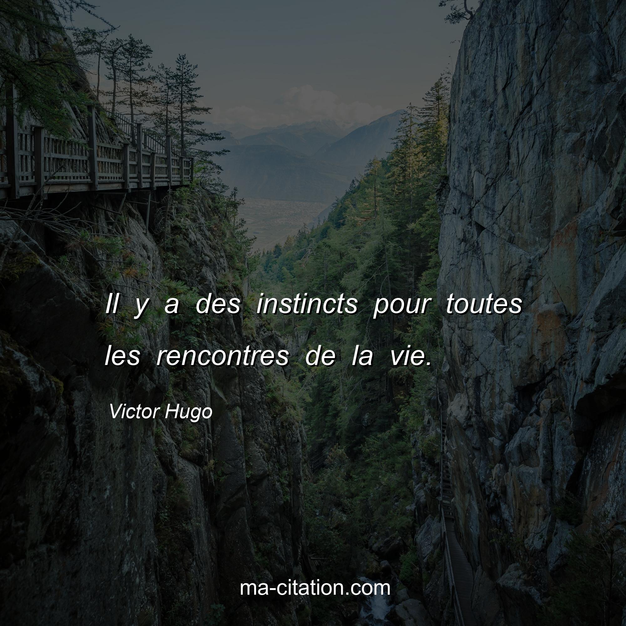 Victor Hugo est l'auteur de la citation sur la vie "Il y a des instincts pour toutes les rencontres de la vie.".
