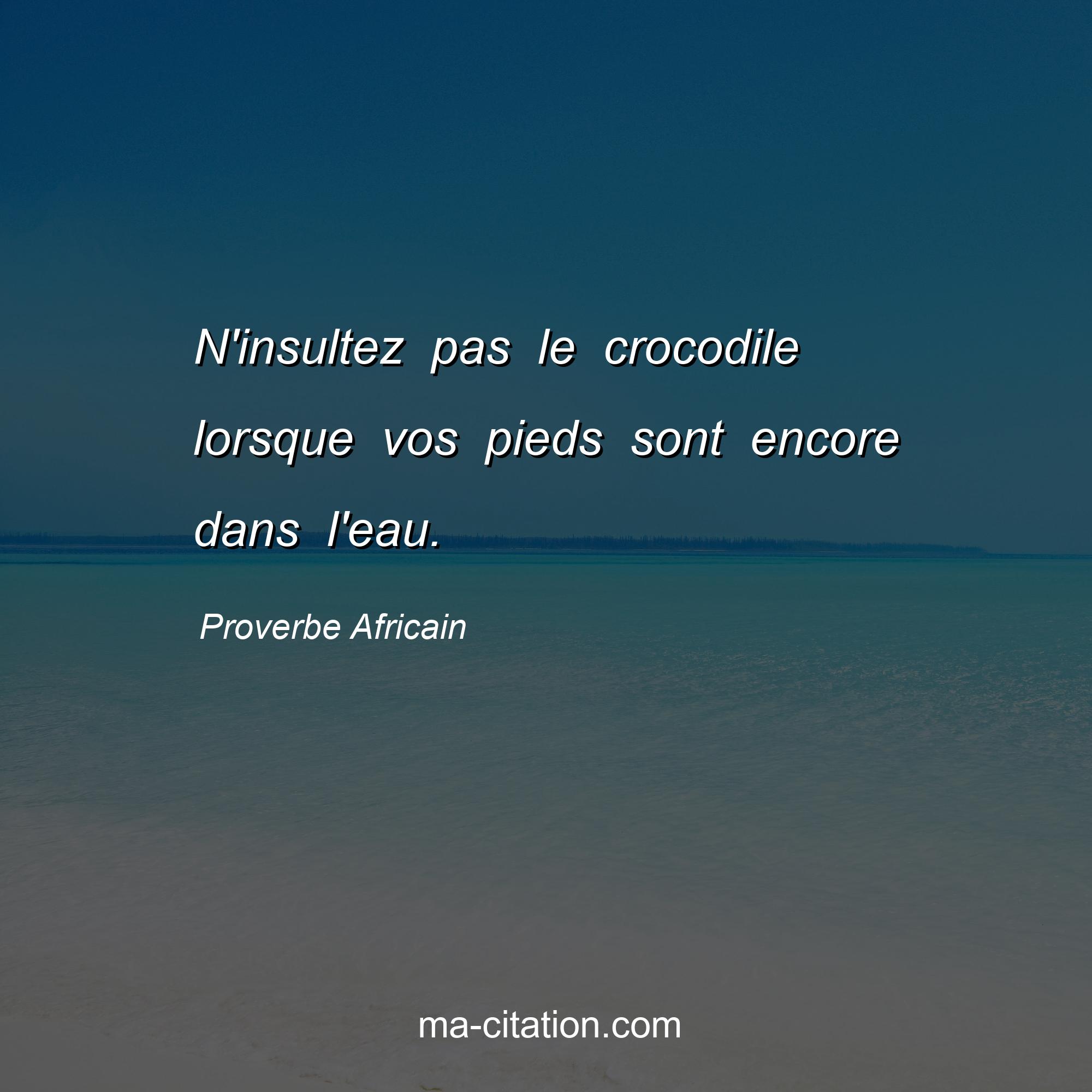 Proverbe Africain sur la vie :N'insultez pas le crocodile lorsque vos pieds sont encore dans l'eau.