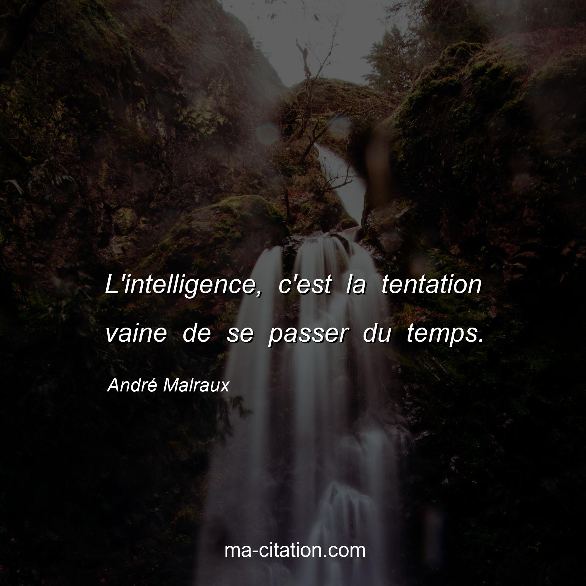Citation sur la vie d'André Malraux :L'intelligence, c'est la tentation vaine de se passer du temps.