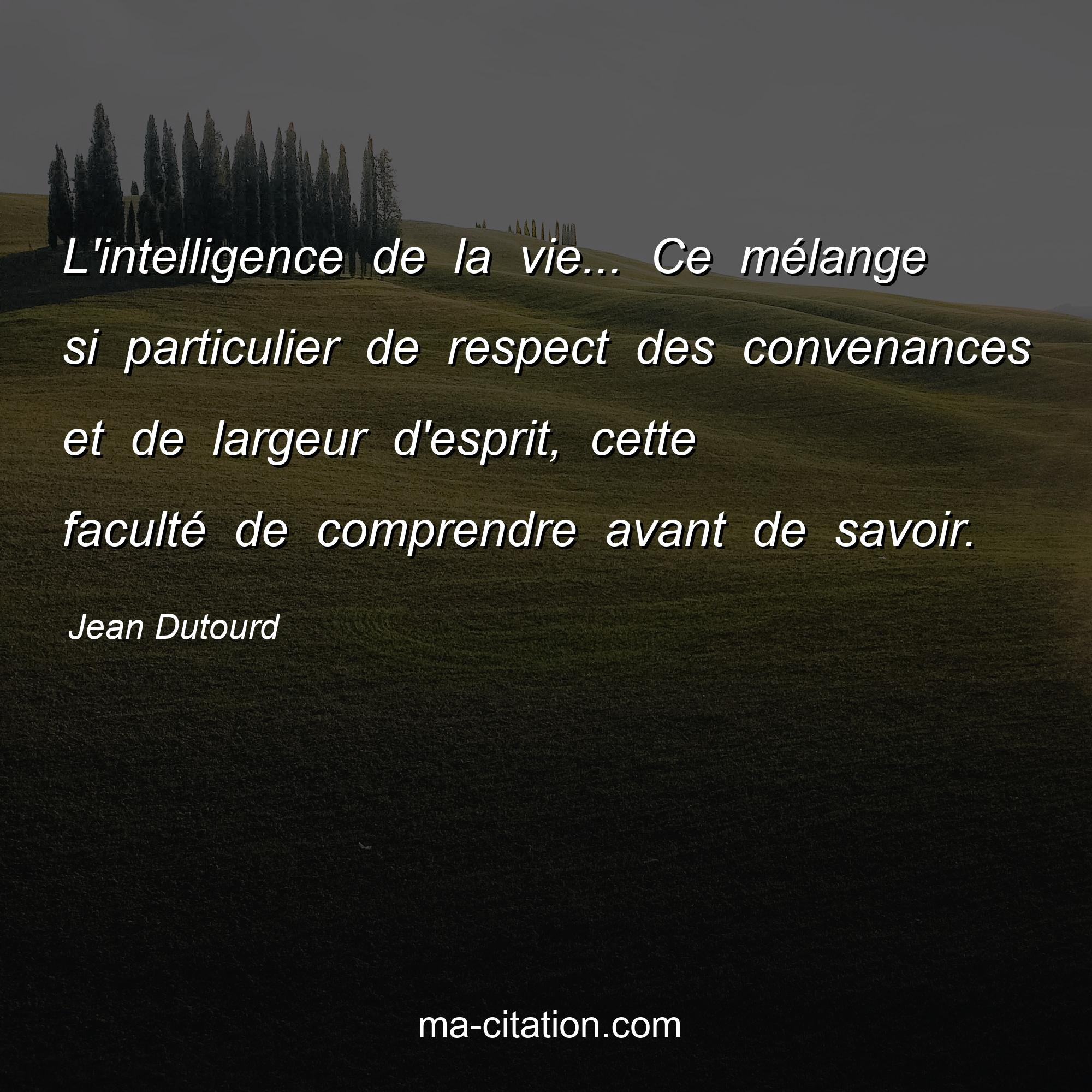 Jean Dutourd est l'auteur de la citation sur la vie "L'intelligence de la vie... Ce mélange si particulier de respect des convenances et de largeur d'esprit, cette faculté de comprendre avant de savoir.".