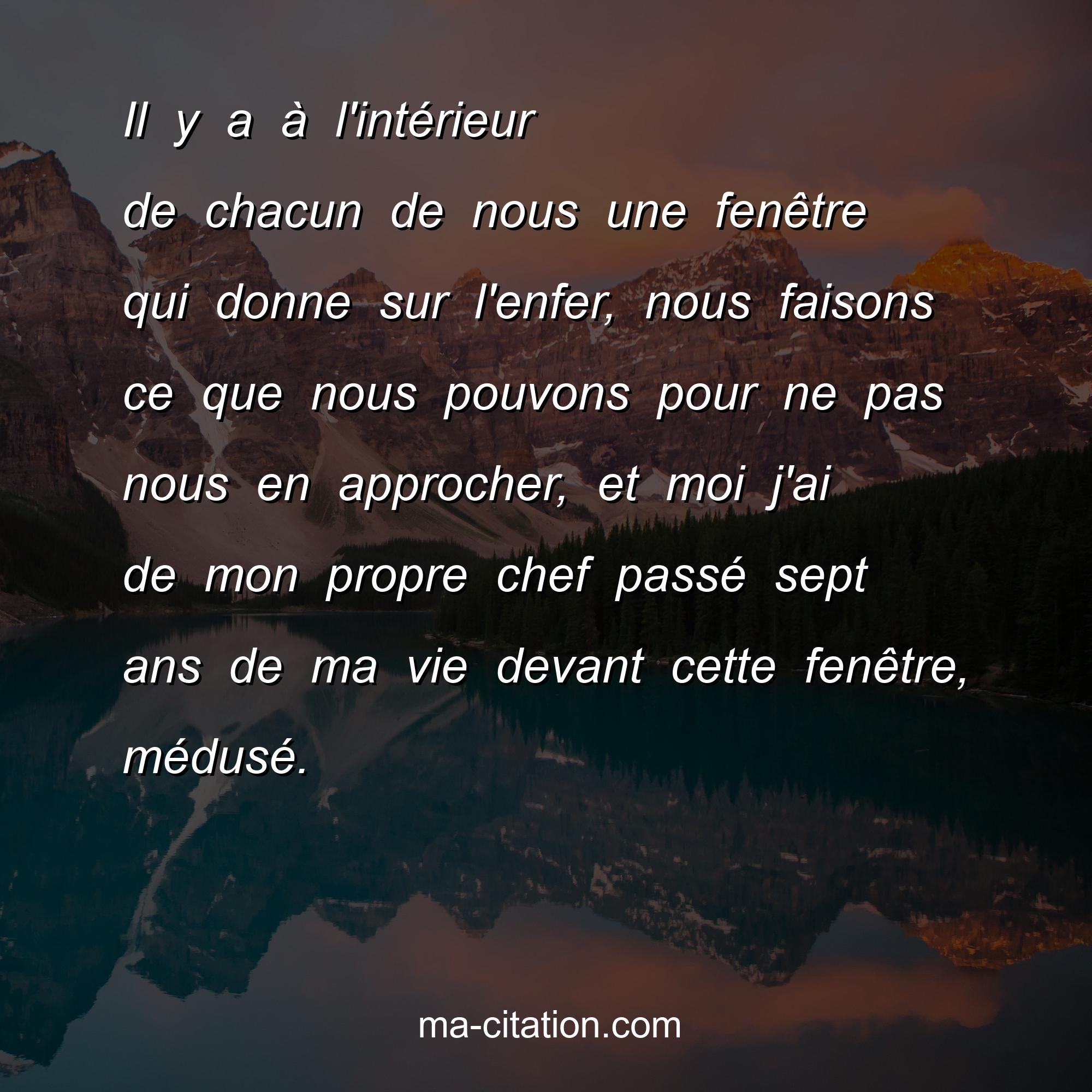 Il y a à l'intérieur de chacun de nous une fenêtre qui donne sur l'enfer, nous faisons ce que nous pouvons pour ne pas nous en approcher, et moi j'ai de mon propre chef passé sept ans de ma vie devant cette fenêtre, médusé.