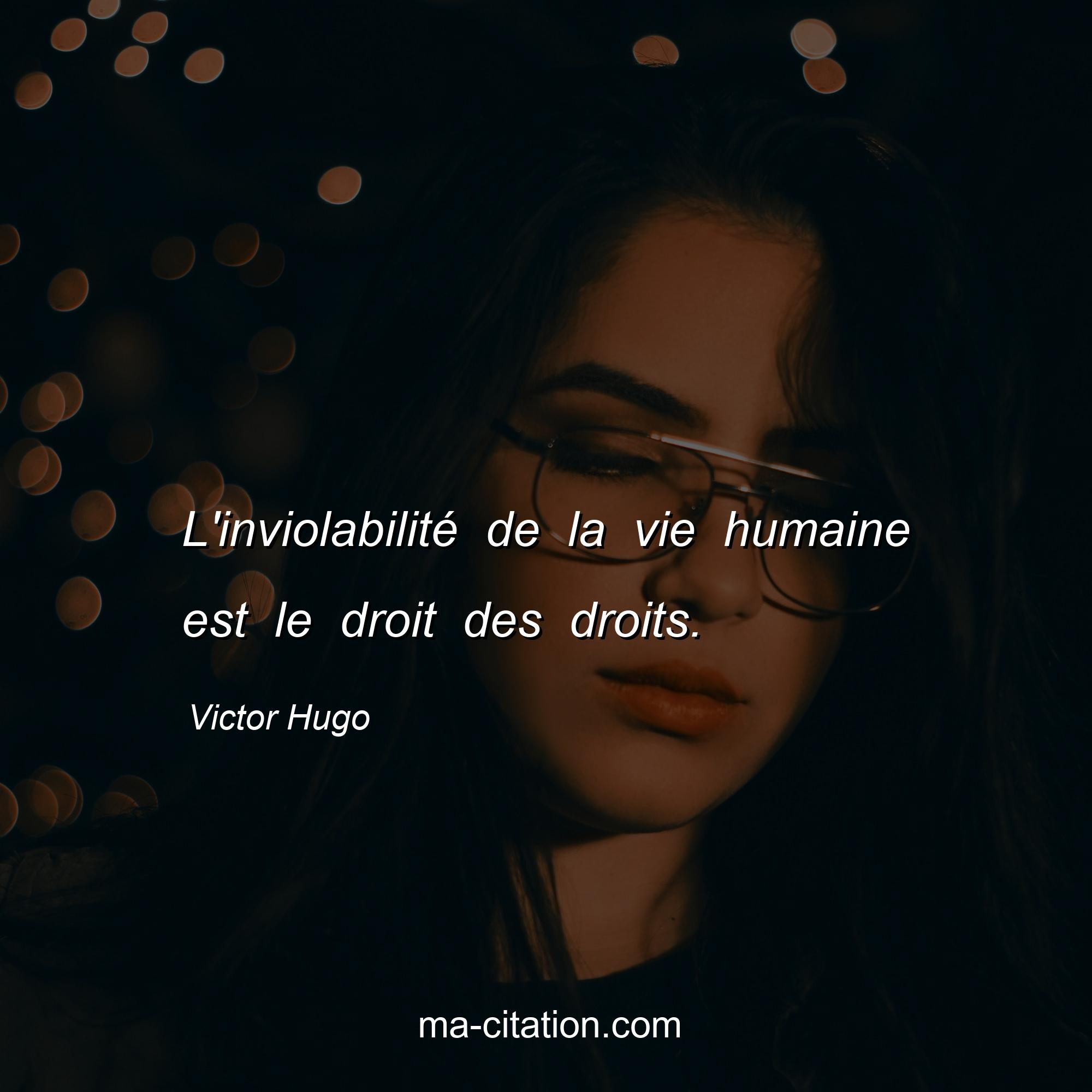 Citation sur la vie de Victor Hugo :L'inviolabilité de la vie humaine est le droit des droits.
