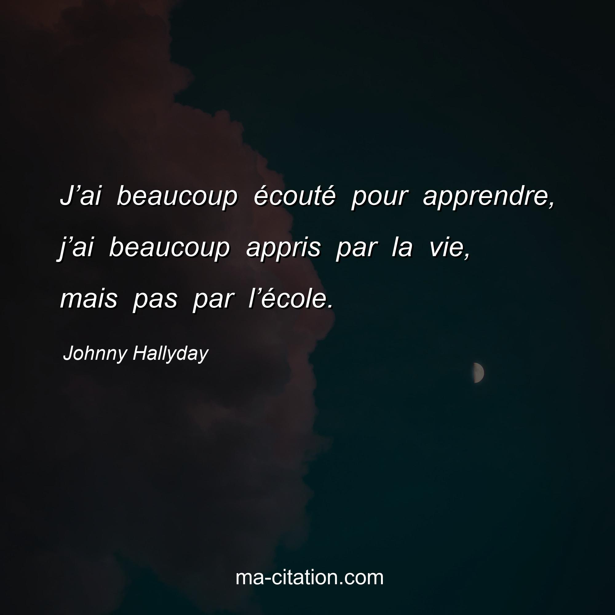 Johnny Hallyday est l'auteur de la citation sur la vie "J’ai beaucoup écouté pour apprendre, j’ai beaucoup appris par la vie, mais pas par l’école.".