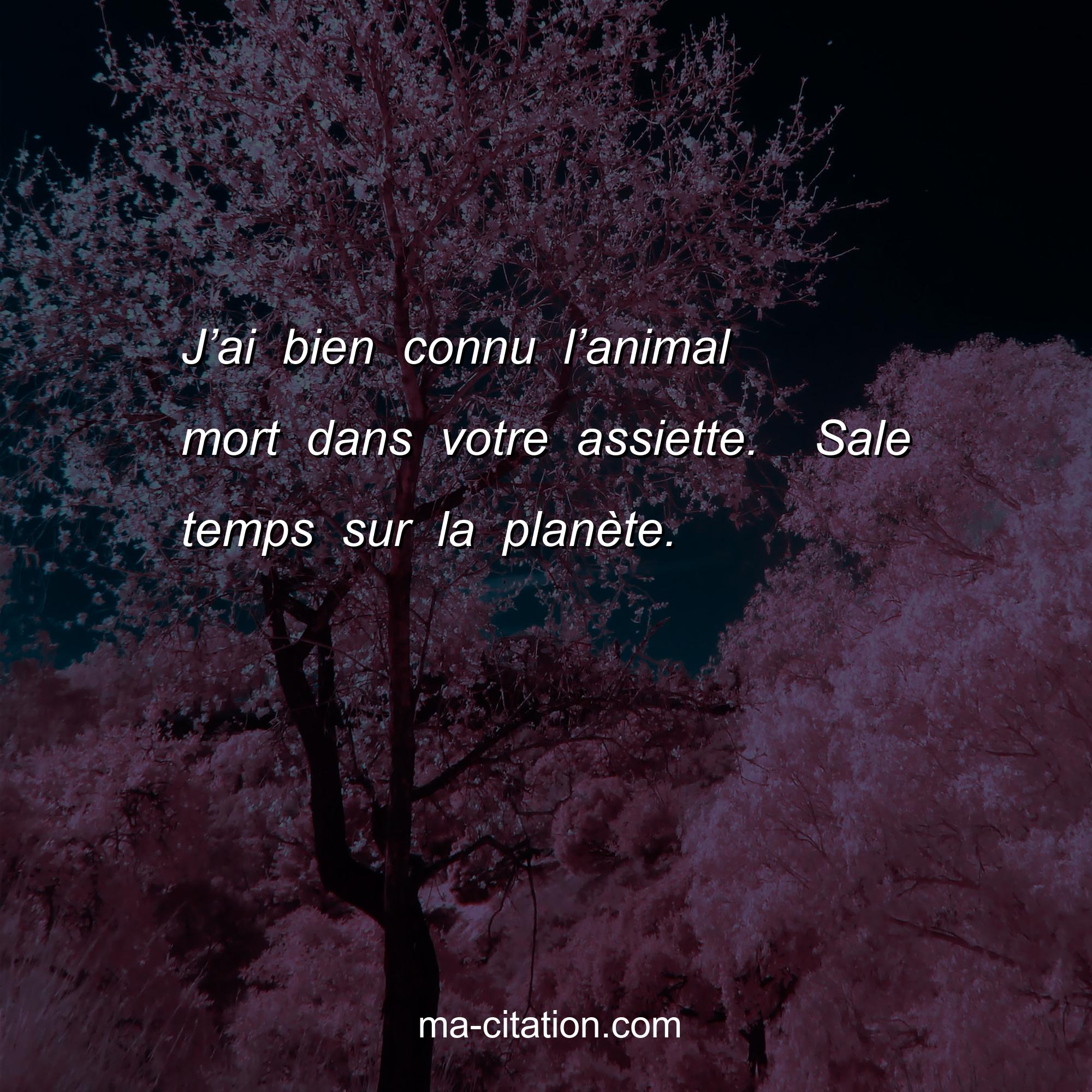 Citation sur la vie :J’ai bien connu l’animal mort dans votre assiette. Sale temps sur la planète.