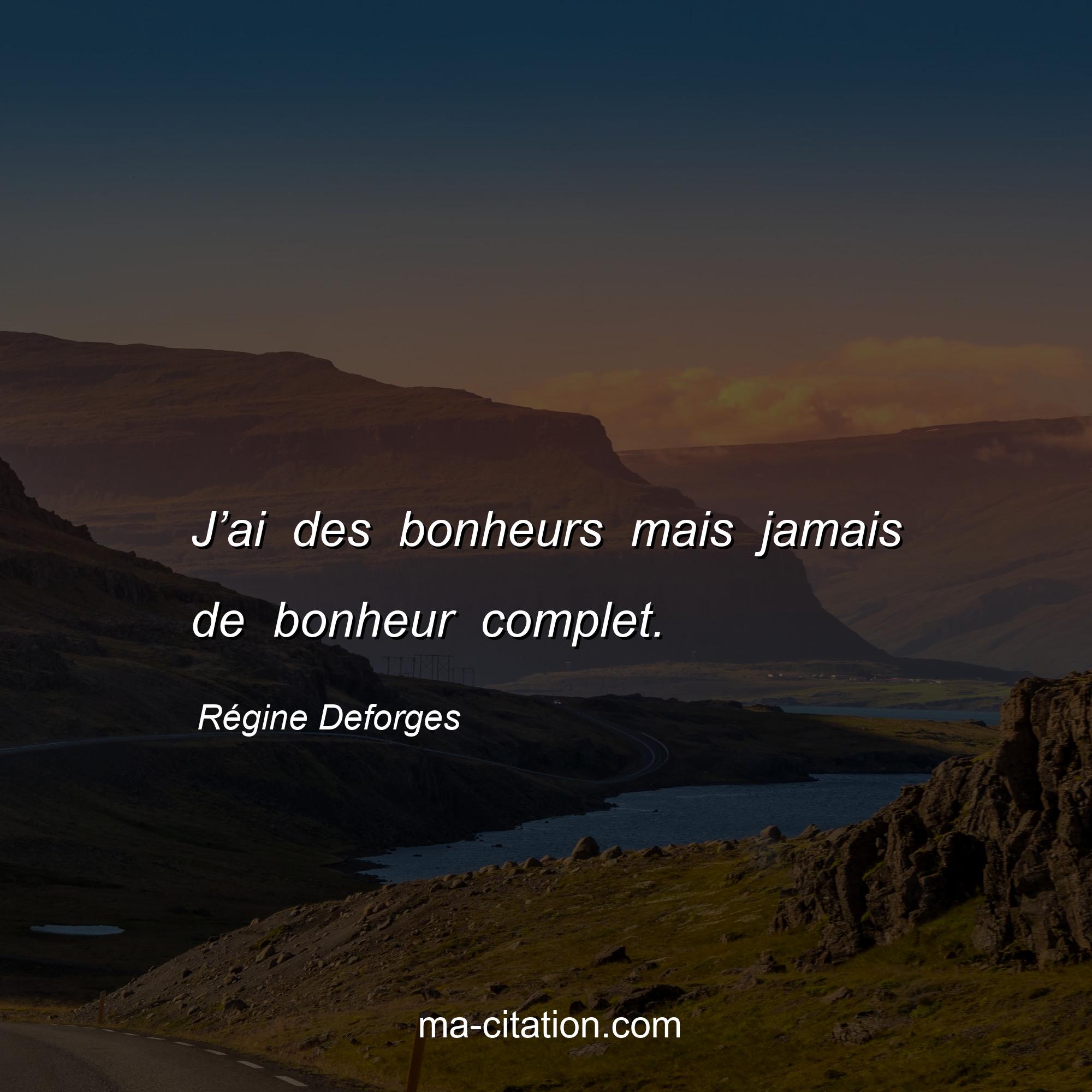 Régine Deforges est l'auteur de la citation sur la vie "J’ai des bonheurs mais jamais de bonheur complet.".
