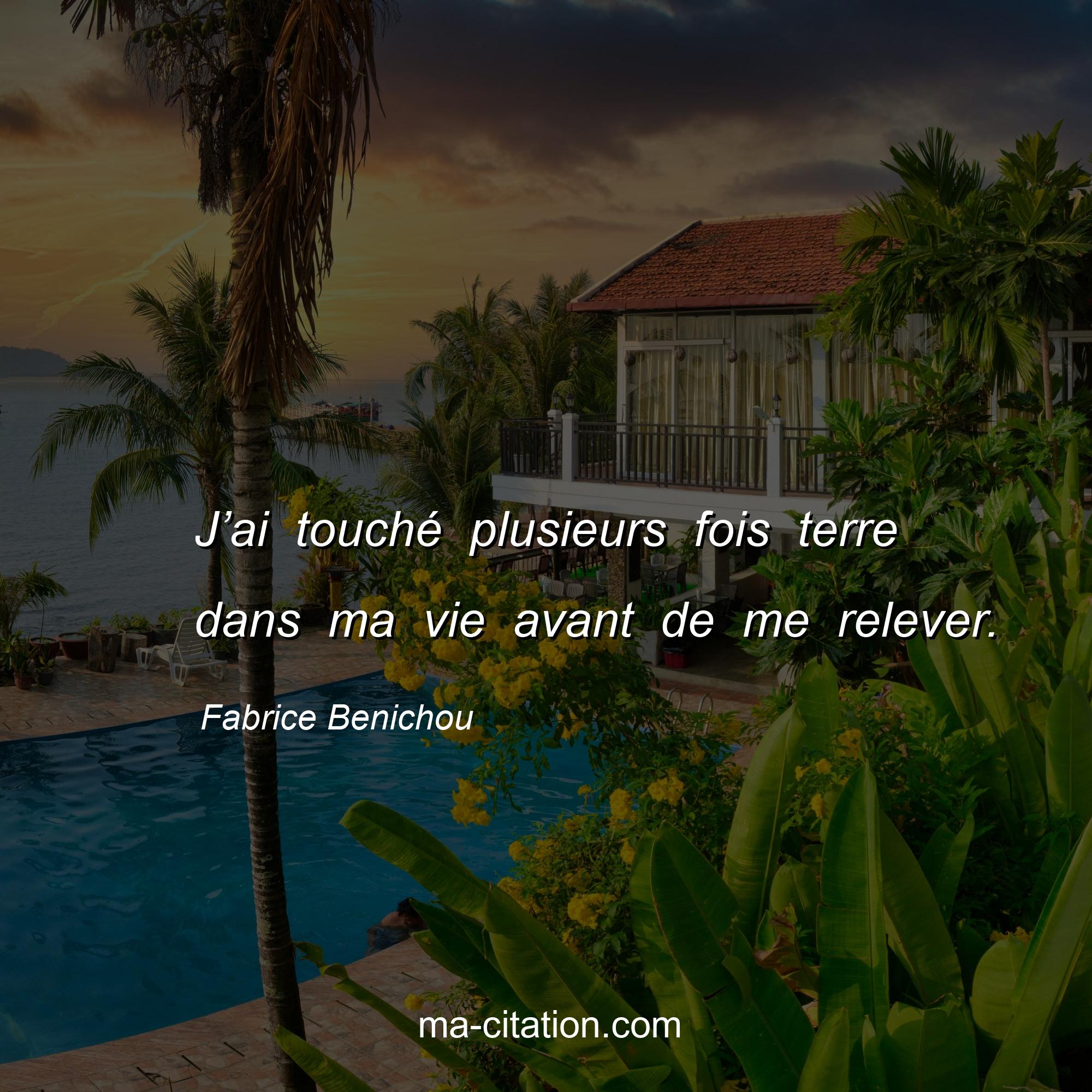 Fabrice Benichou est l'auteur de la citation sur la vie "J’ai touché plusieurs fois terre dans ma vie avant de me relever.".