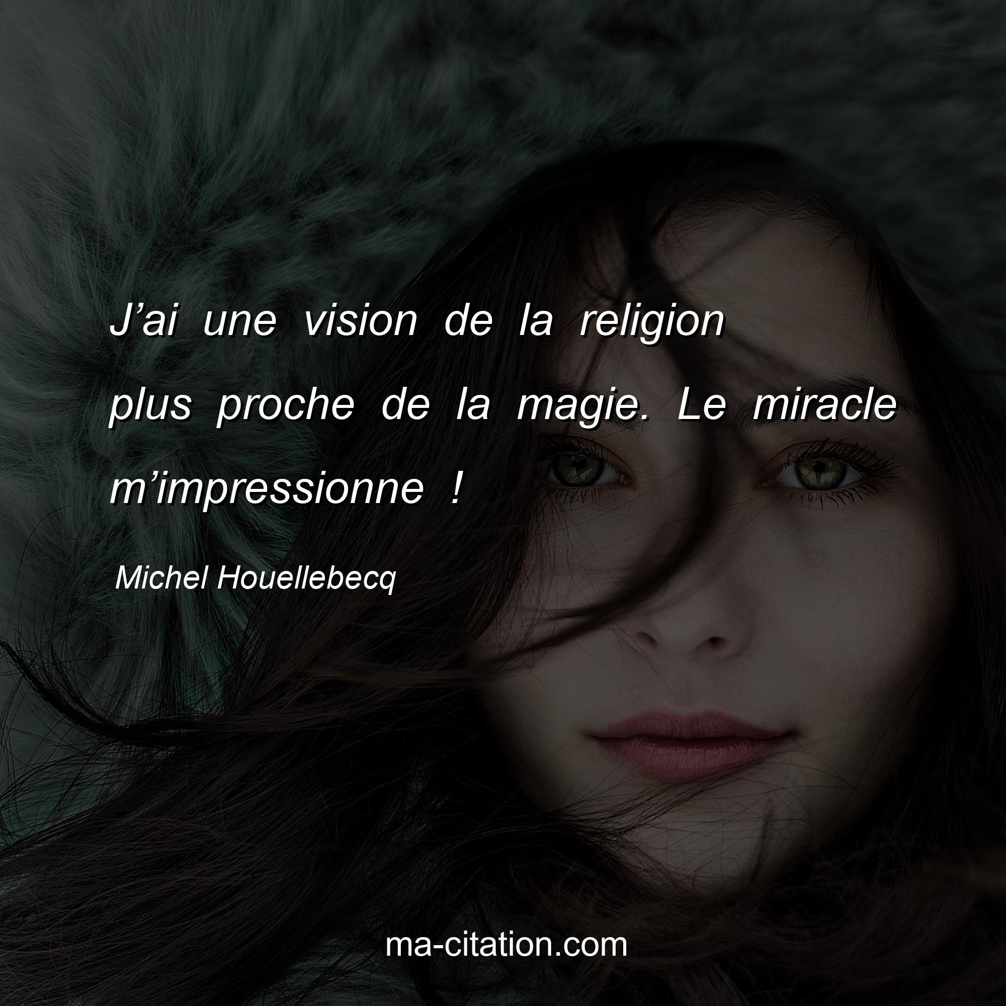 Citation sur la vie de Michel Houellebecq :J’ai une vision de la religion plus proche de la magie. Le miracle m’impressionne !