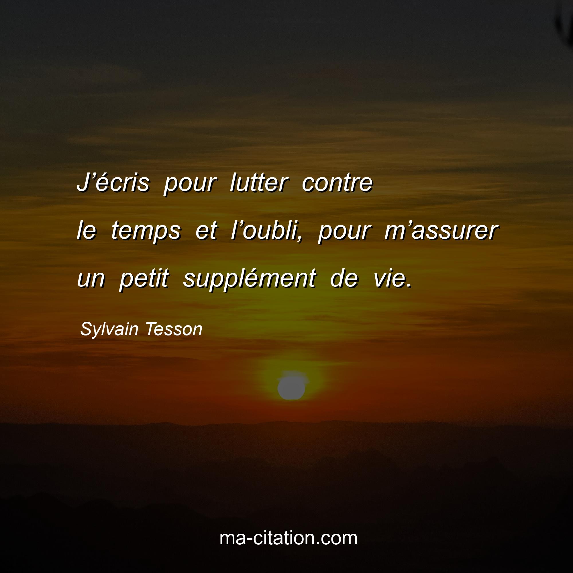 Citation sur la vie de Sylvain Tesson :J’écris pour lutter contre le temps et l’oubli, pour m’assurer un petit supplément de vie.