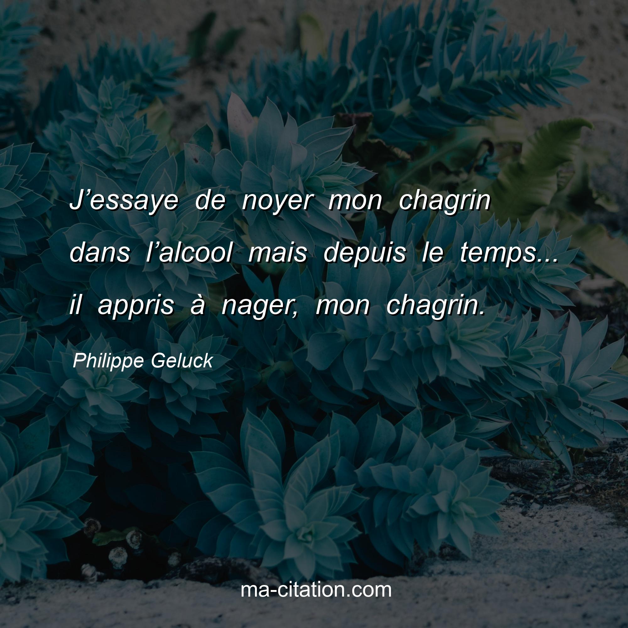 Citation sur la vie de Philippe Geluck :J’essaye de noyer mon chagrin dans l’alcool mais depuis le temps... il appris à nager, mon chagrin.