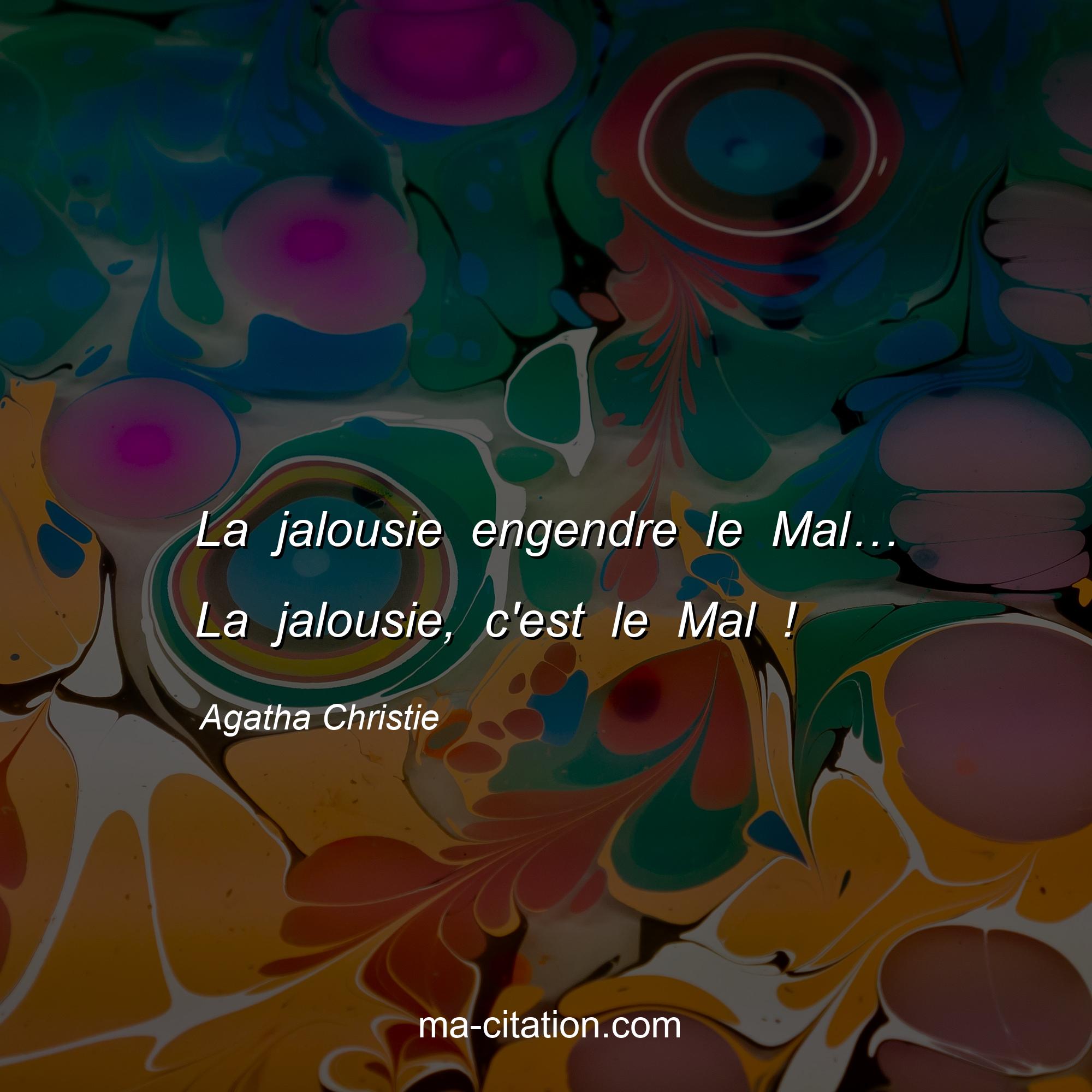 Citation sur la vie d'Agatha Christie :La jalousie engendre le Mal… La jalousie, c'est le Mal !