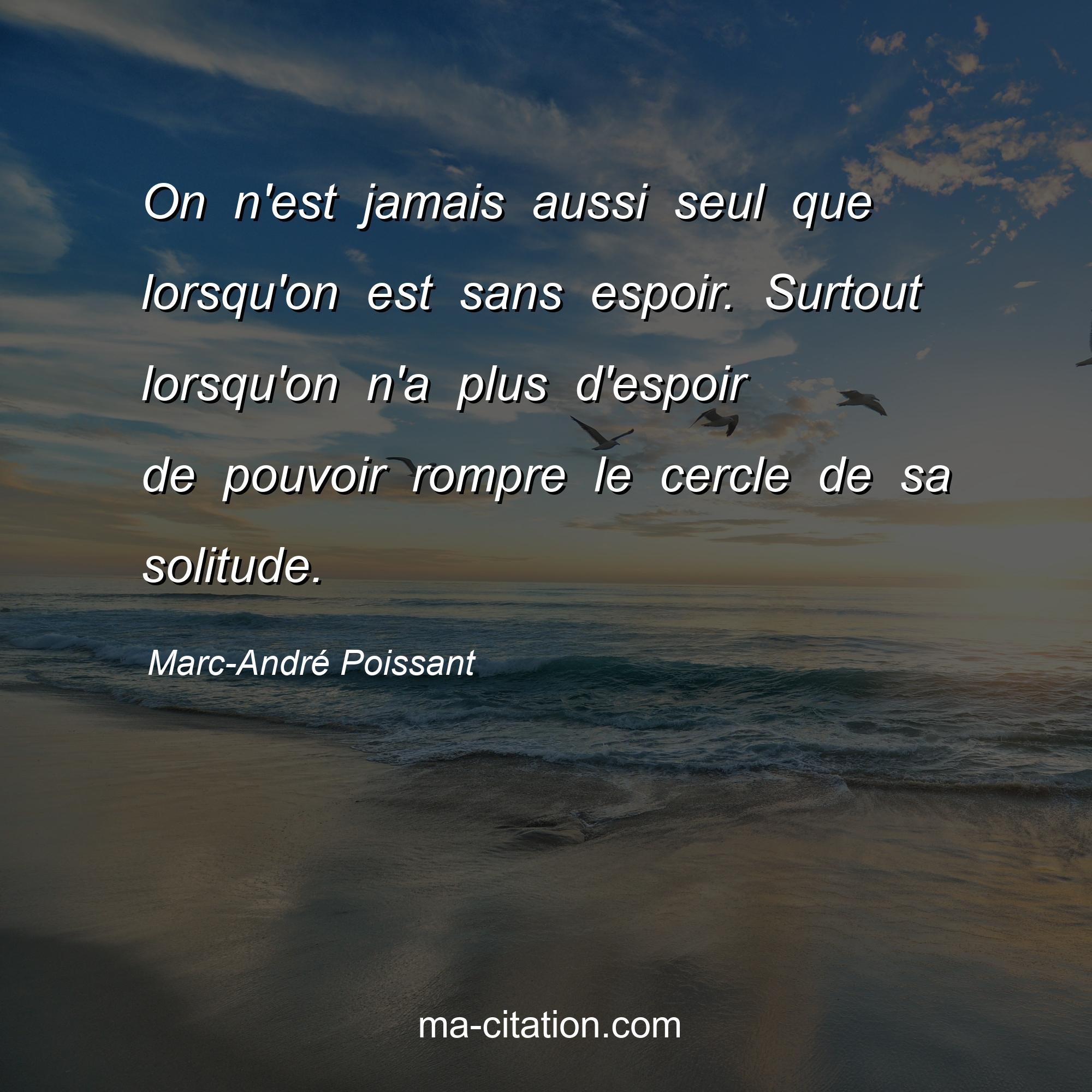 Marc-André Poissant est l'auteur de la citation sur la vie "On n'est jamais aussi seul que lorsqu'on est sans espoir. Surtout lorsqu'on n'a plus d'espoir de pouvoir rompre le cercle de sa solitude.".