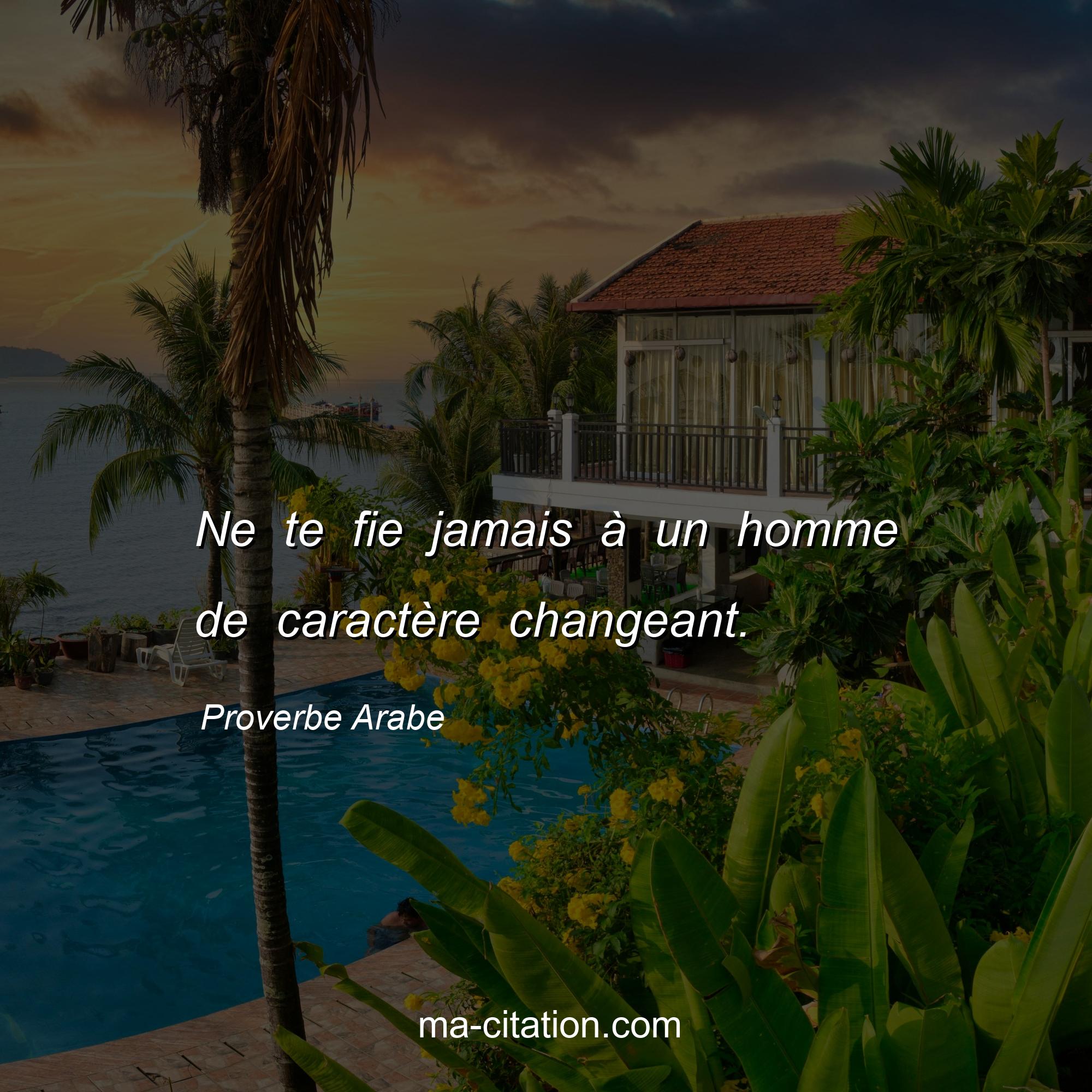 Proverbe Arabe sur la vie :Ne te fie jamais à un homme de caractère changeant.
