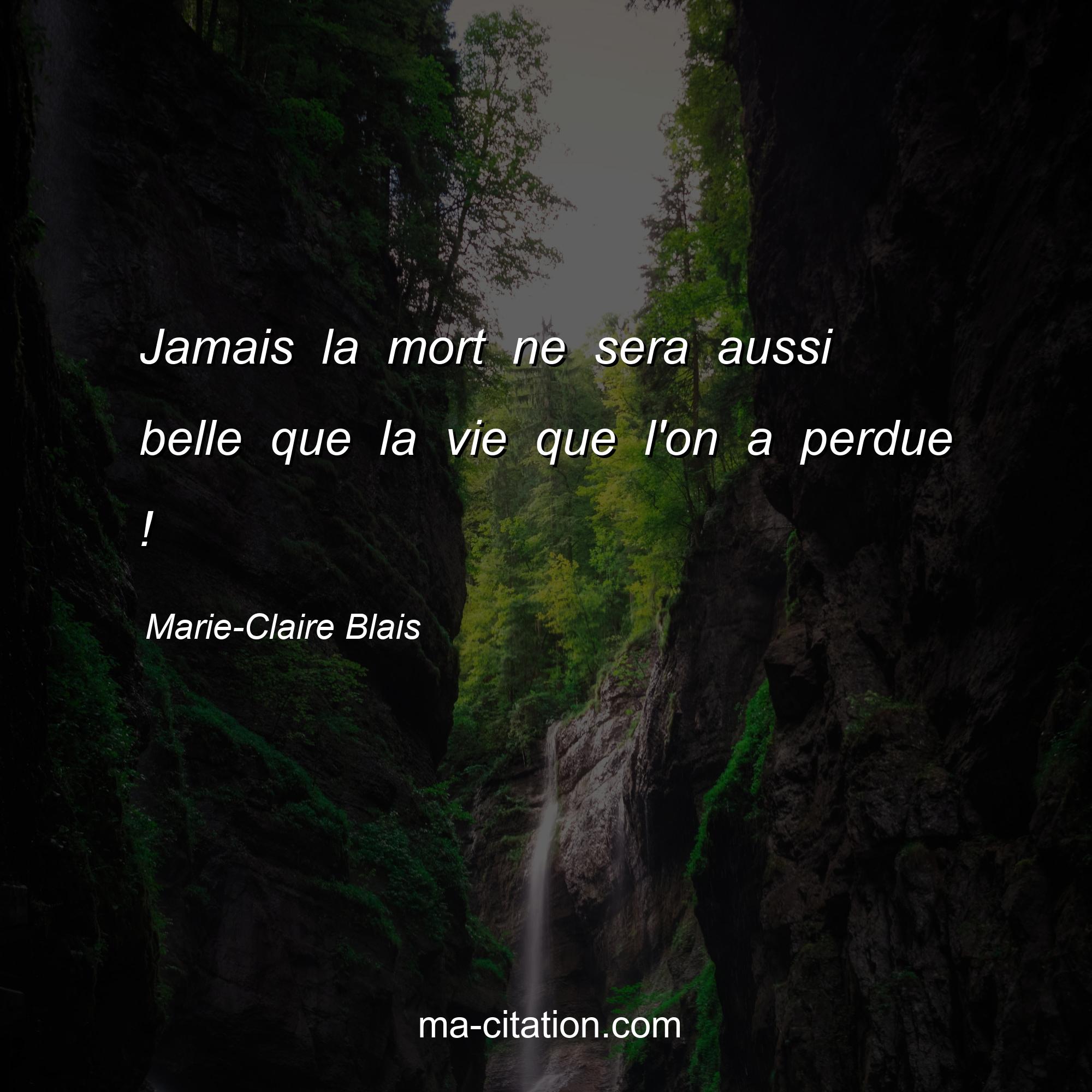Citation sur la vie de Marie-Claire Blais :Jamais la mort ne sera aussi belle que la vie que l'on a perdue !