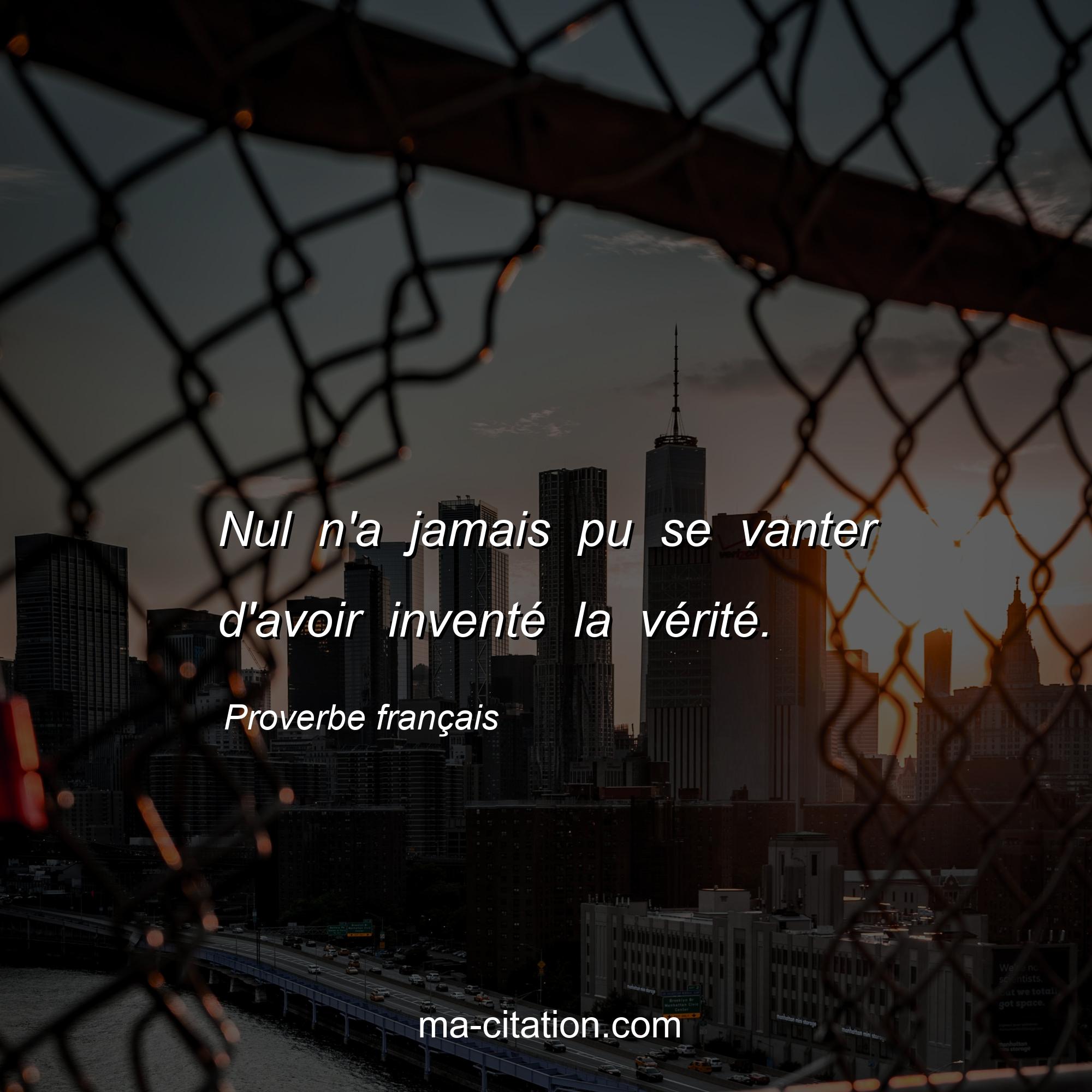 Proverbe français sur la vie :Nul n'a jamais pu se vanter d'avoir inventé la vérité.