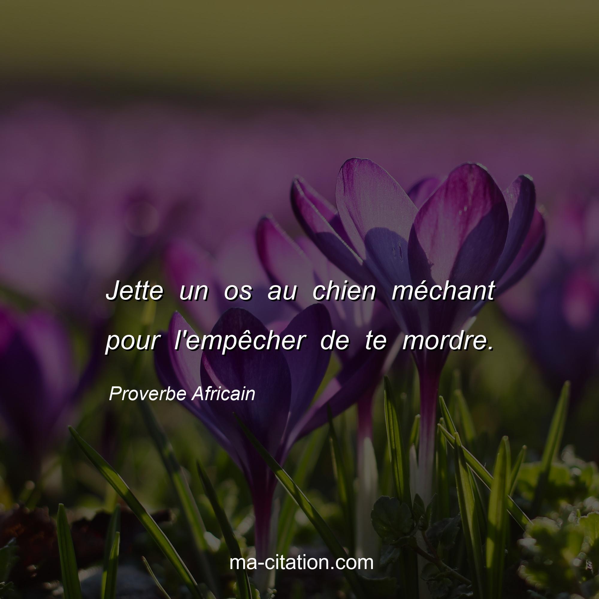 Proverbe Africain sur la vie :Jette un os au chien méchant pour l'empêcher de te mordre.