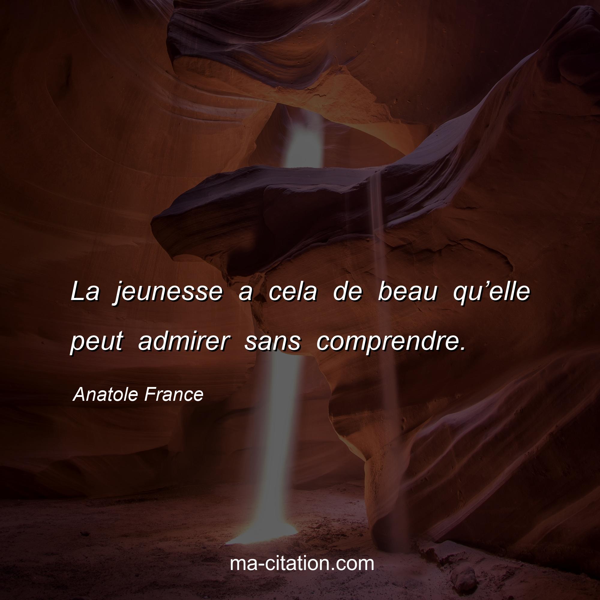 Citation sur la vie d'Anatole France :La jeunesse a cela de beau qu’elle peut admirer sans comprendre.
