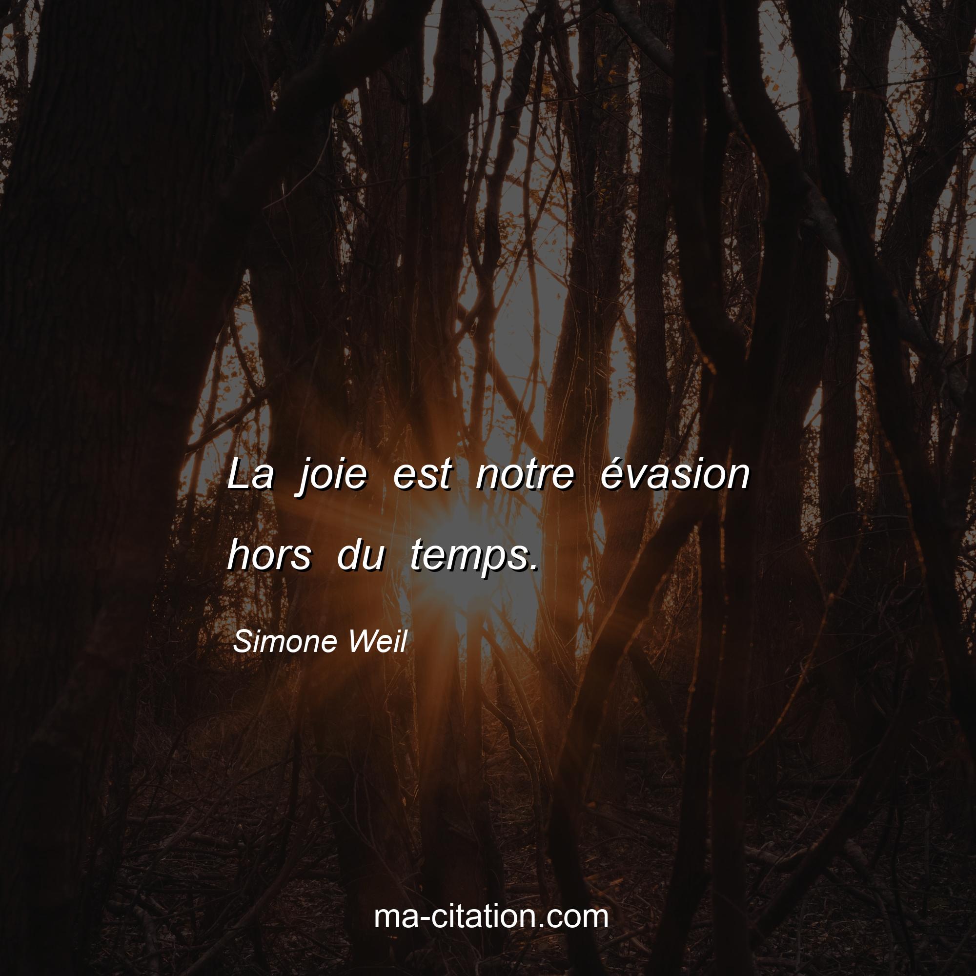 Citation sur la vie de Simone Weil :La joie est notre évasion hors du temps.