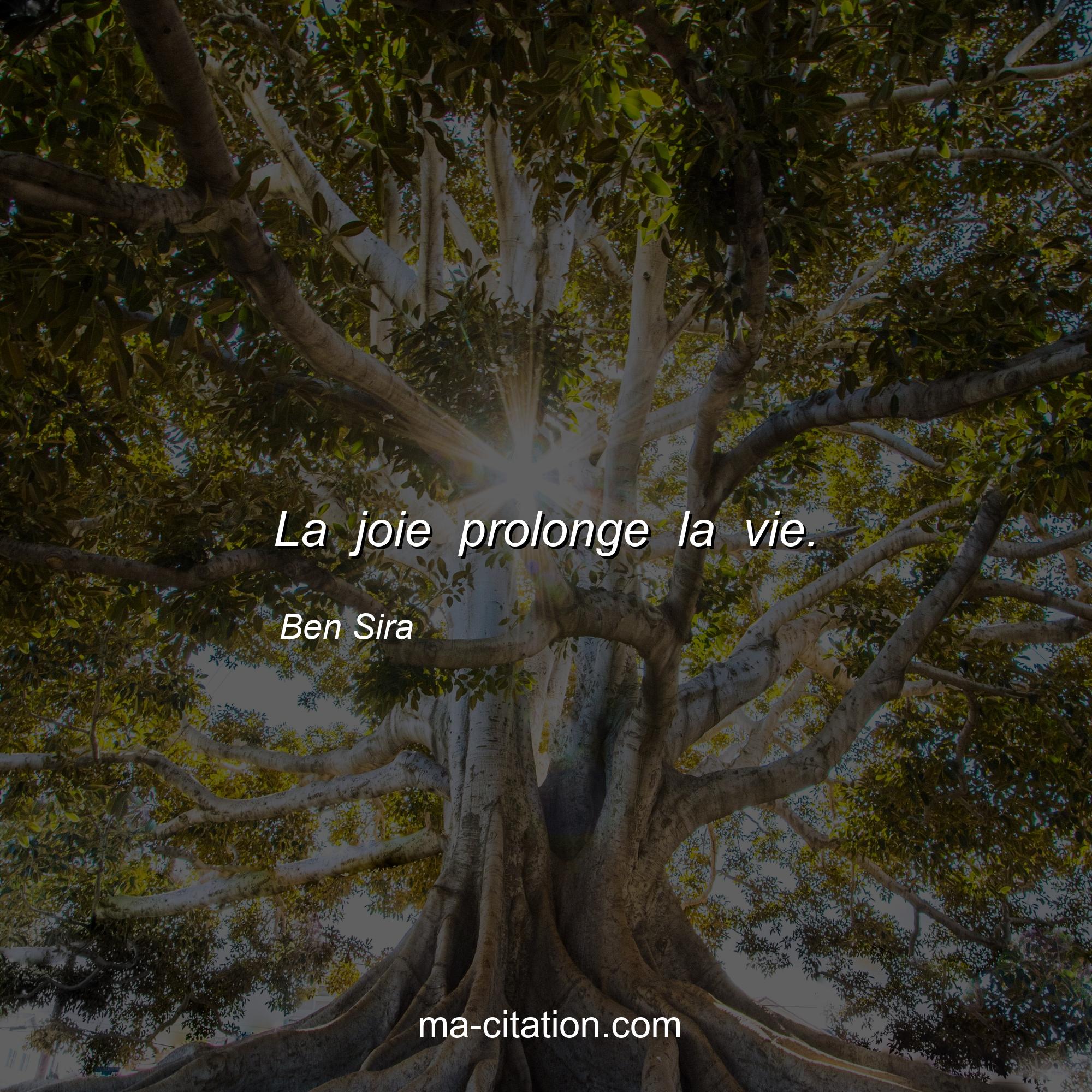 Citation sur la vie de Ben Sira :La joie prolonge la vie.