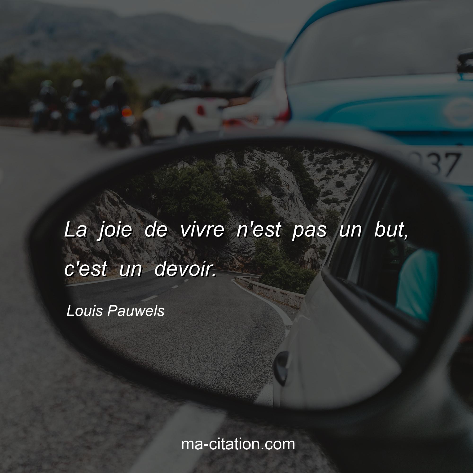 Louis Pauwels est l'auteur de la citation sur la vie "La joie de vivre n'est pas un but, c'est un devoir.".