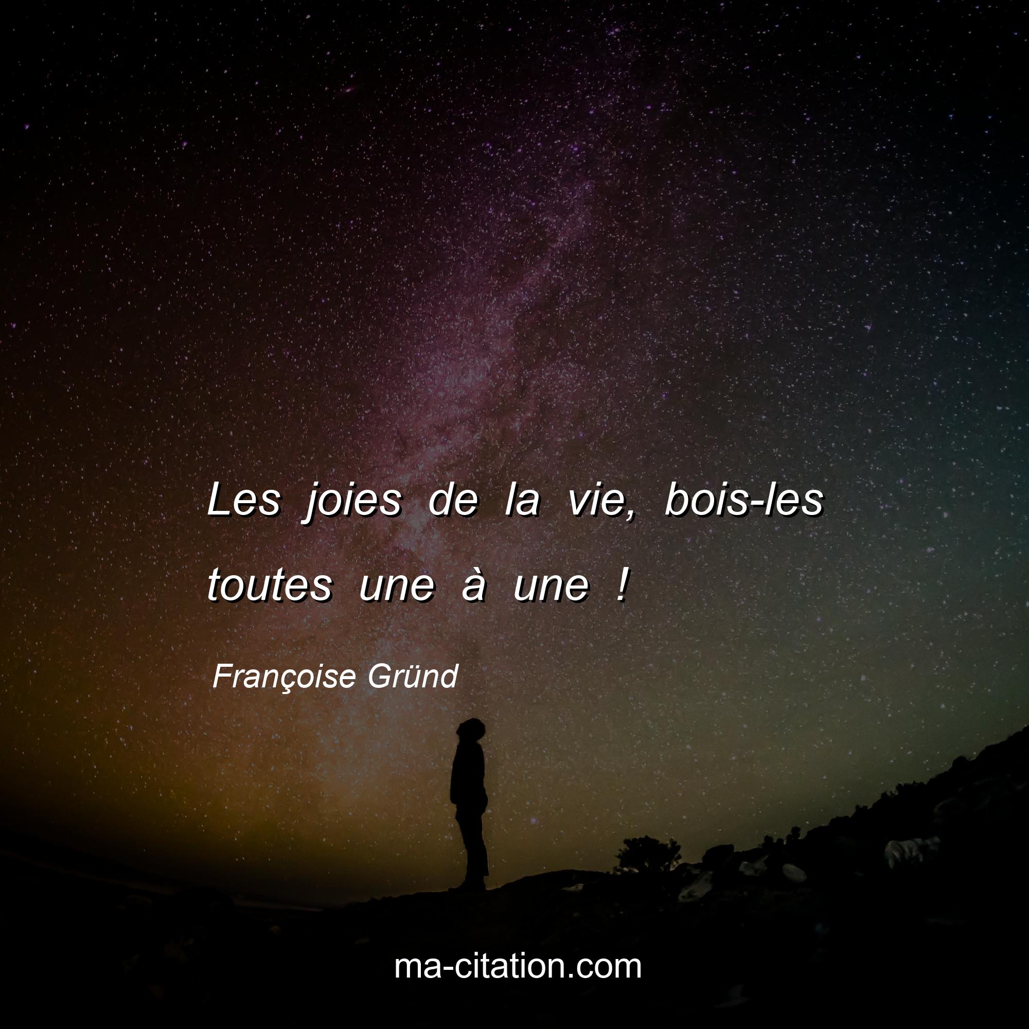Françoise Gründ est l'auteur de la citation sur la vie "Les joies de la vie, bois-les toutes une à une !".