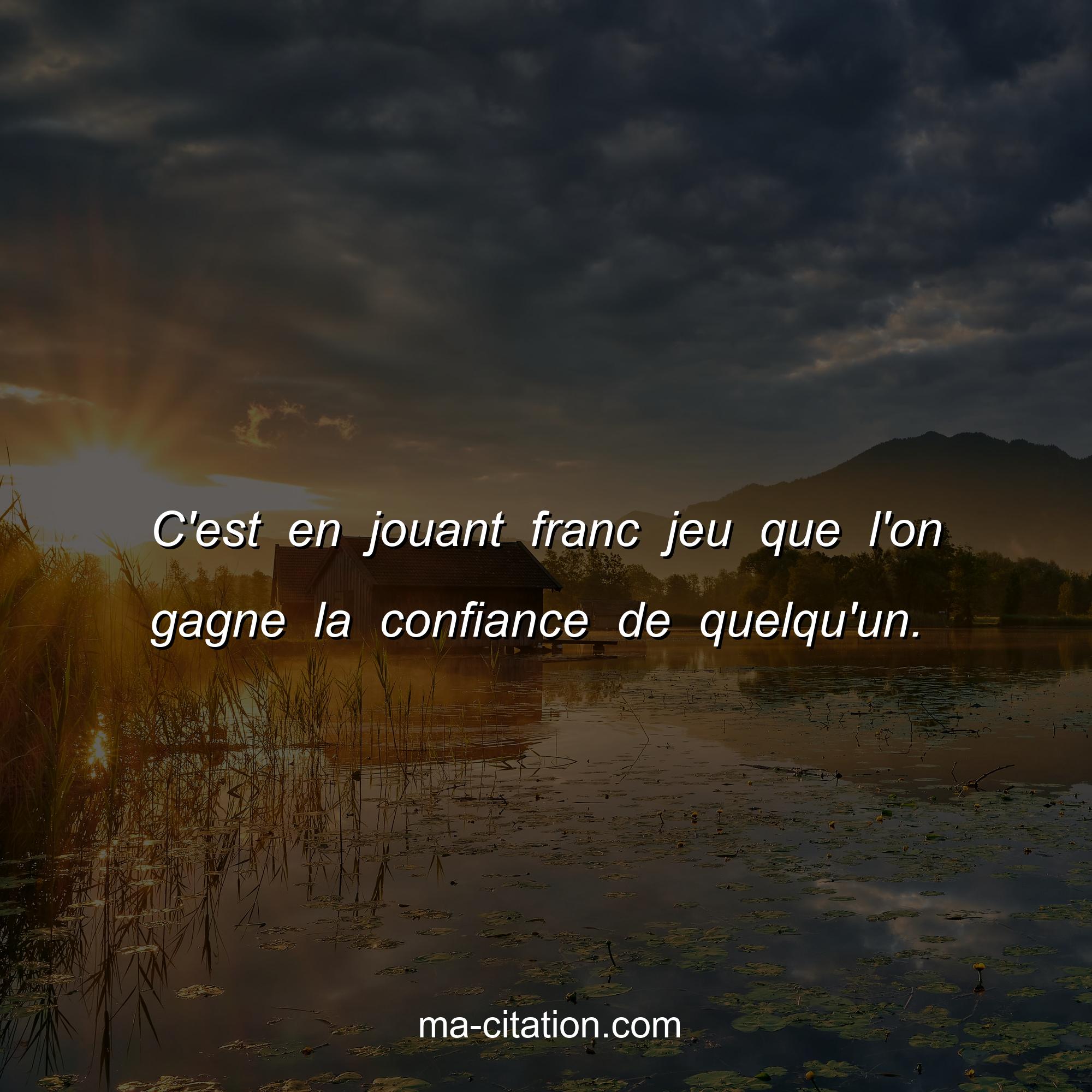 Citation sur la vie :C'est en jouant franc jeu que l'on gagne la confiance de quelqu'un.