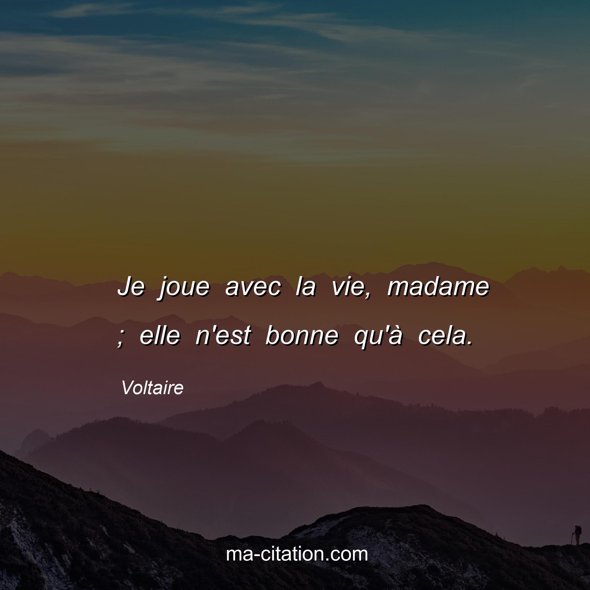 Citation sur la vie de Voltaire :Je joue avec la vie, madame ; elle n'est bonne qu'Ã cela.