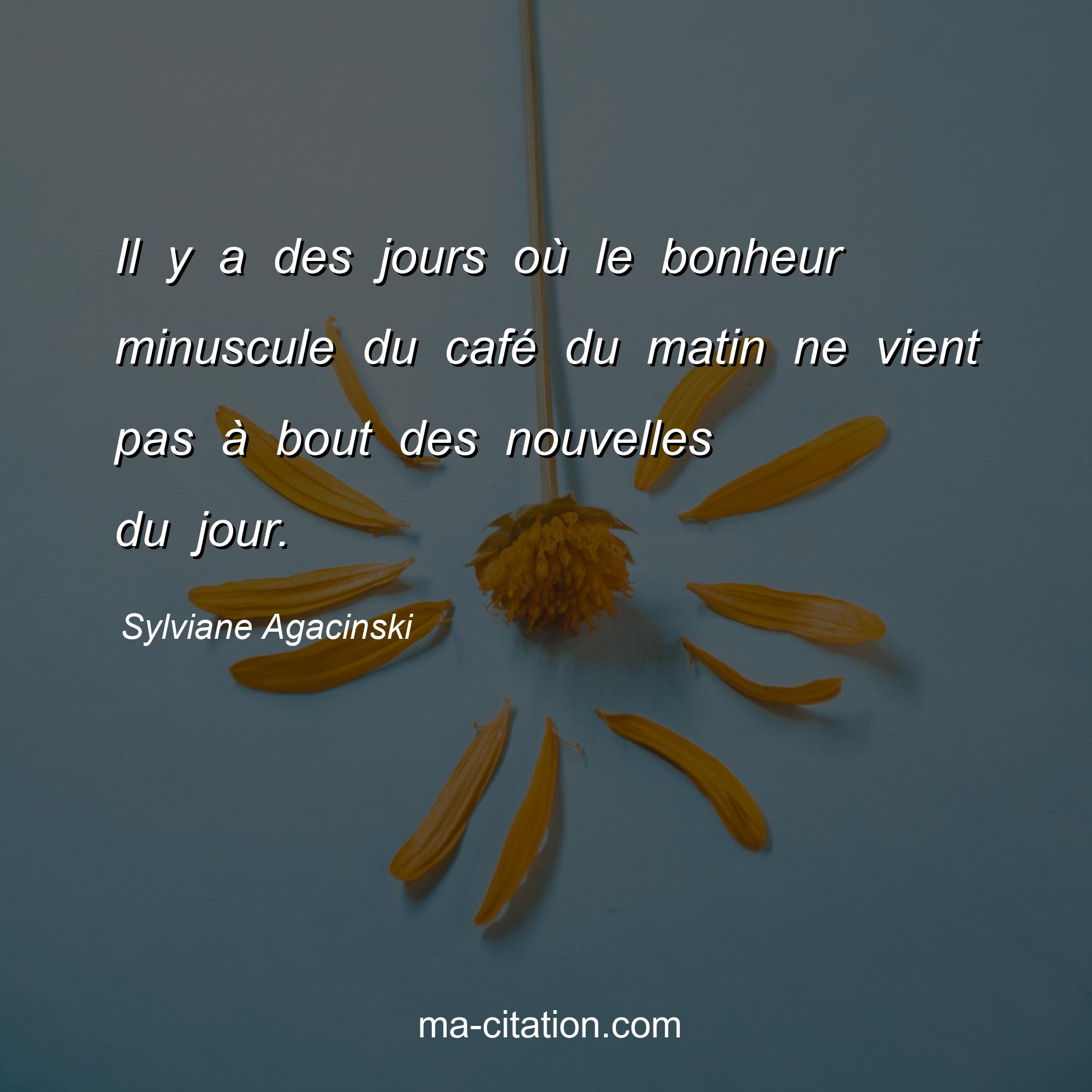 Citation sur la vie de Sylviane Agacinski :Il y a des jours où le bonheur minuscule du café du matin ne vient pas à bout des nouvelles du jour.