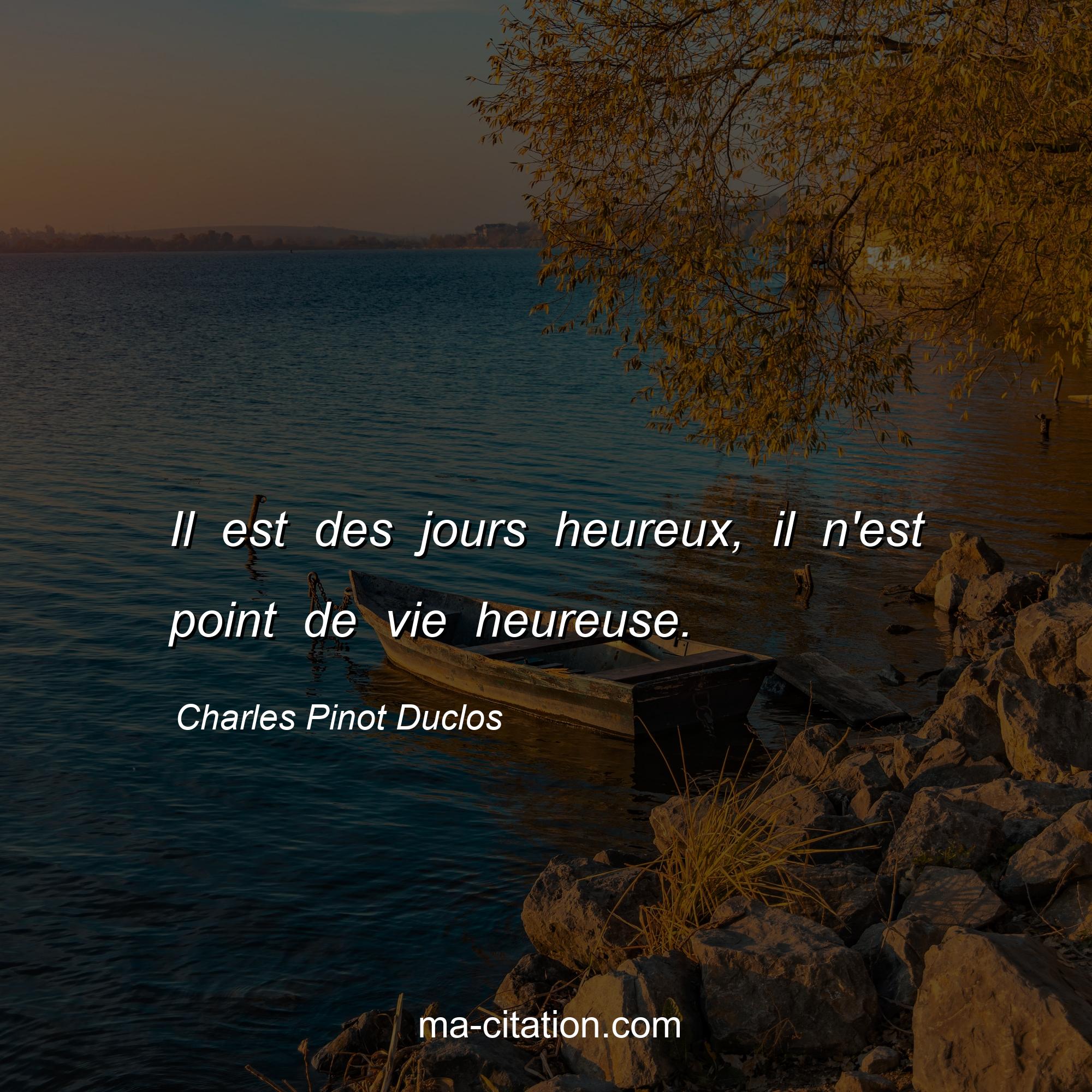 Charles Pinot Duclos est l'auteur de la citation sur la vie "Il est des jours heureux, il n'est point de vie heureuse.".