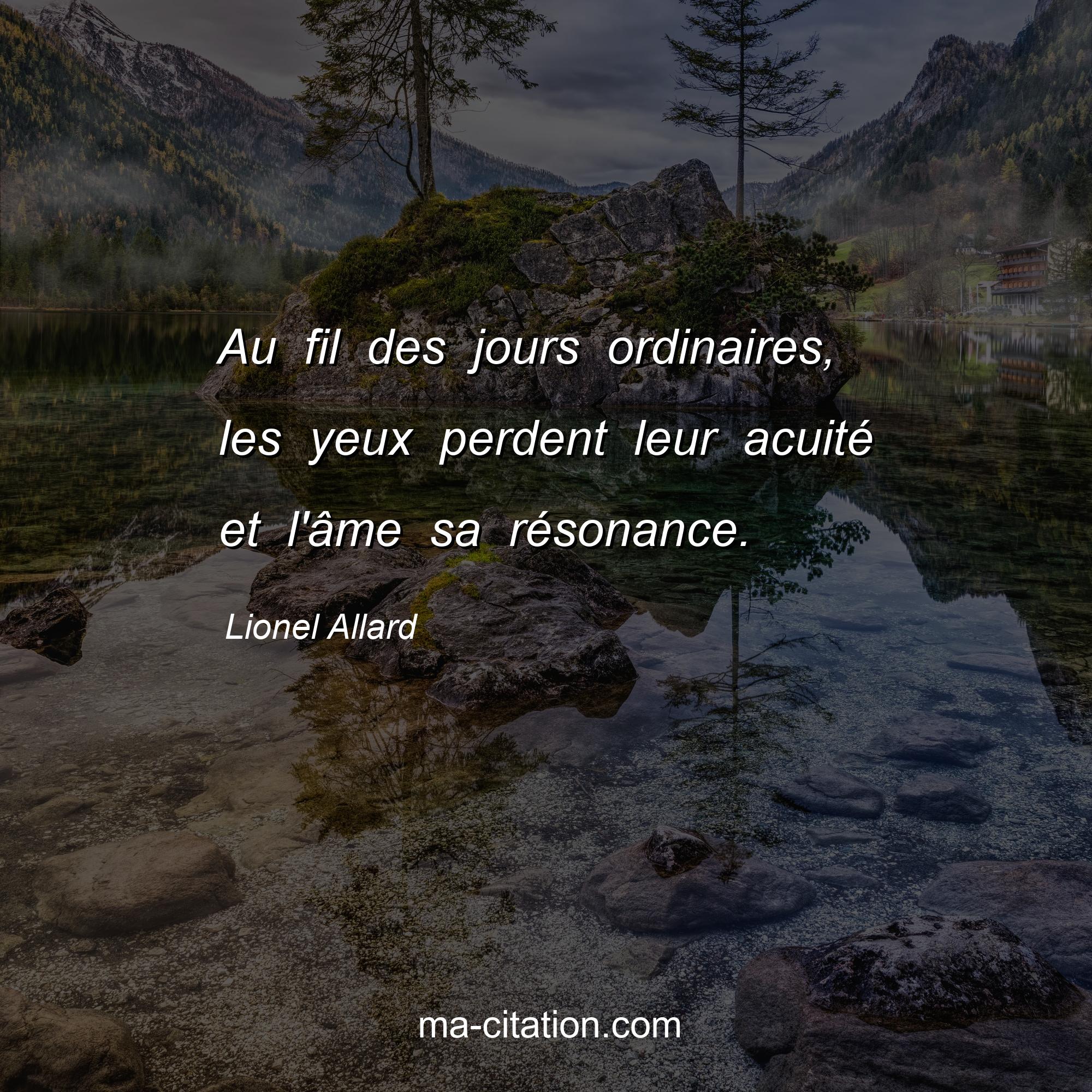 Lionel Allard est l'auteur de la citation sur la vie "Au fil des jours ordinaires, les yeux perdent leur acuité et l'âme sa résonance.".