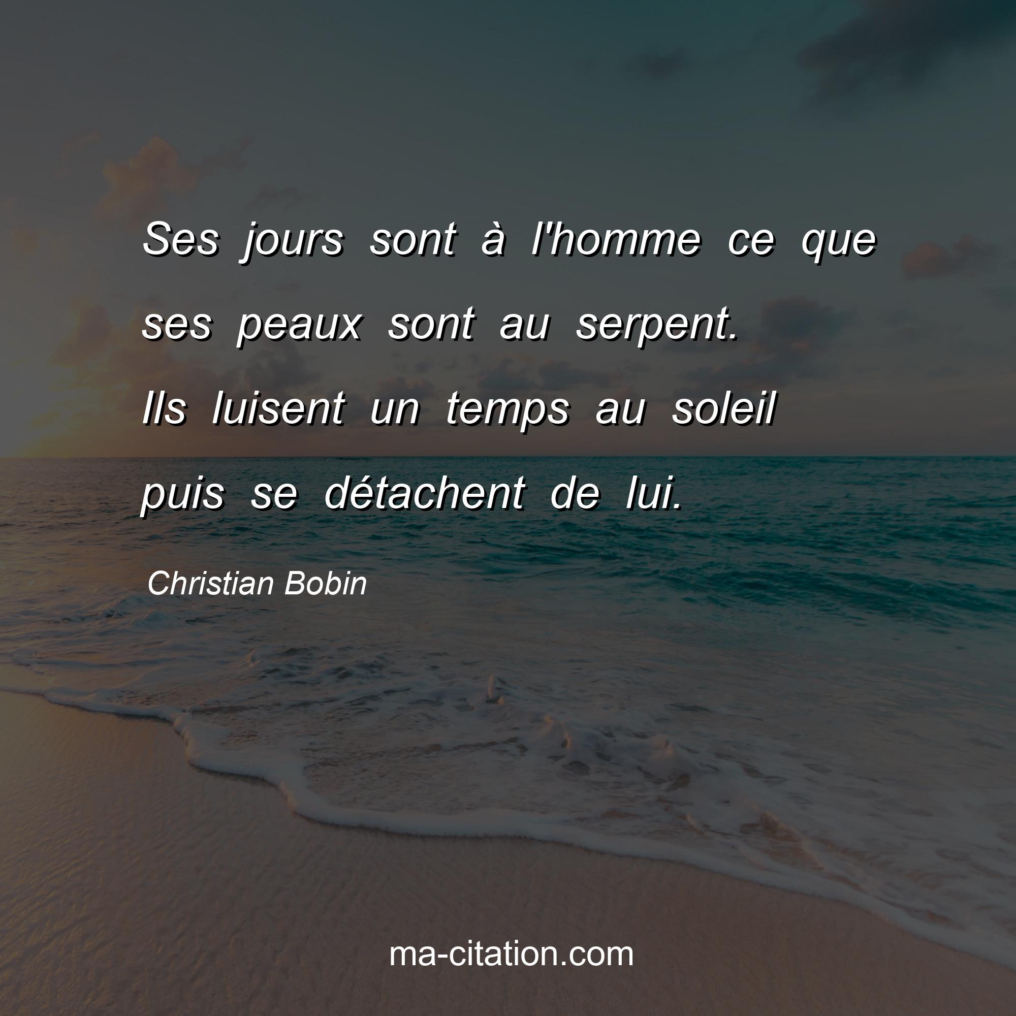 Citation sur la vie de Christian Bobin :Ses jours sont à l'homme ce que ses peaux sont au serpent. Ils luisent un temps au soleil puis se détachent de lui.