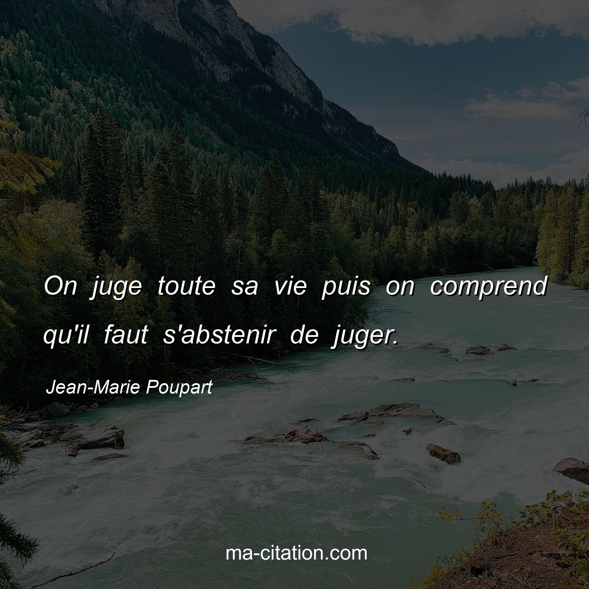 Citation sur la vie de Jean-Marie Poupart :On juge toute sa vie puis on comprend qu'il faut s'abstenir de juger.