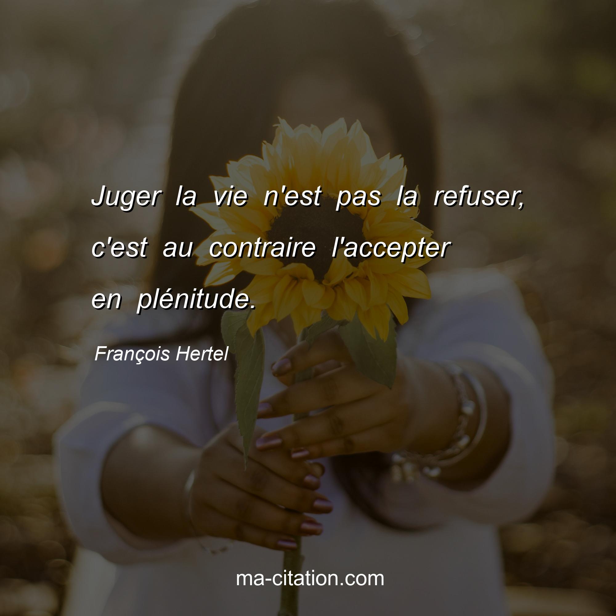 Citation sur la vie de François Hertel :Juger la vie n'est pas la refuser, c'est au contraire l'accepter en plénitude.