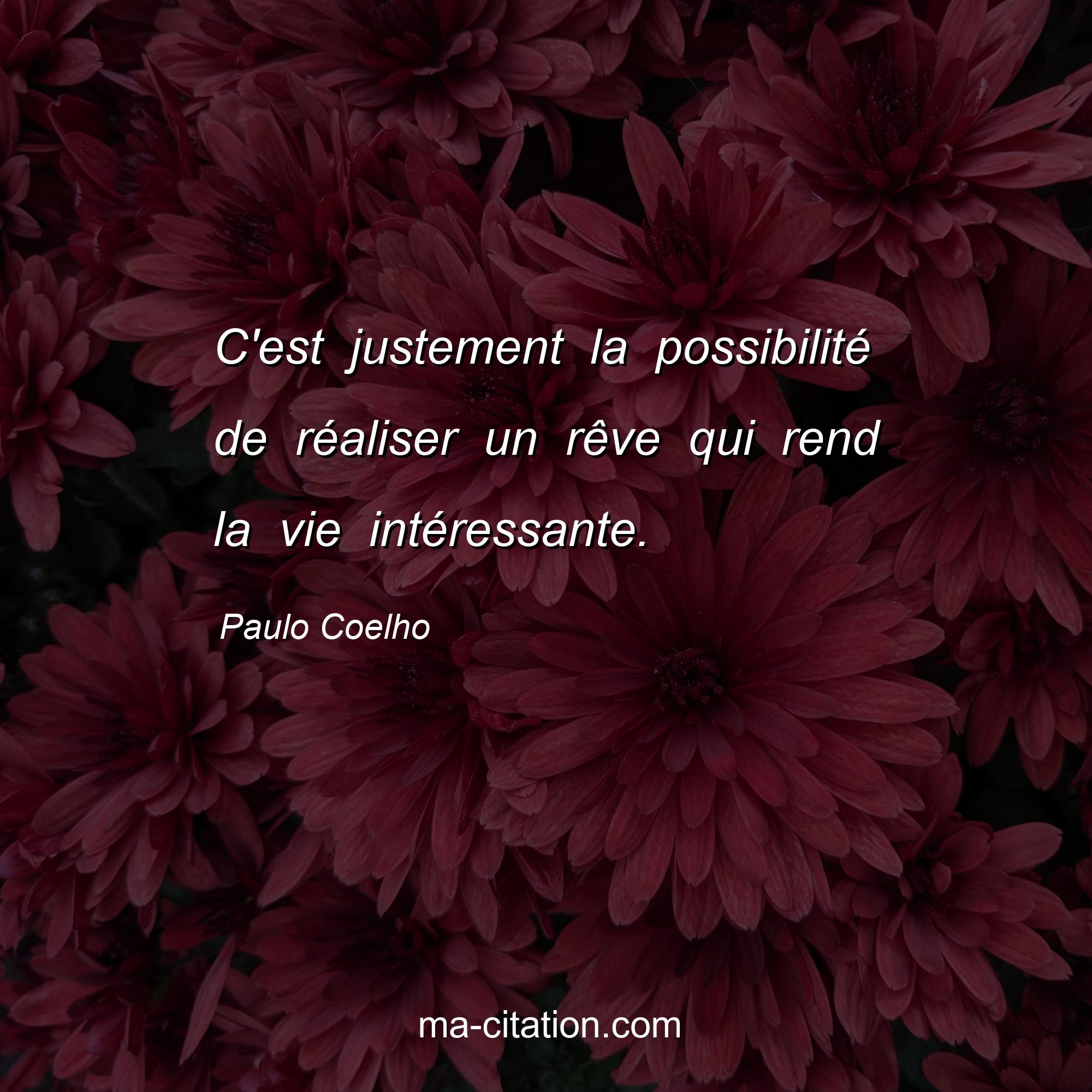 Citation sur la vie de Paulo Coelho :C'est justement la possibilité de réaliser un rêve qui rend la vie intéressante.