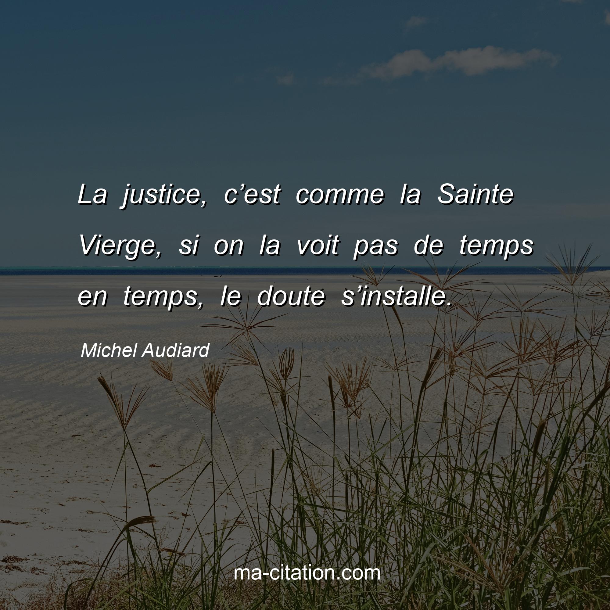 Citation sur la vie de Michel Audiard :La justice, c’est comme la Sainte Vierge, si on la voit pas de temps en temps, le doute s’installe.