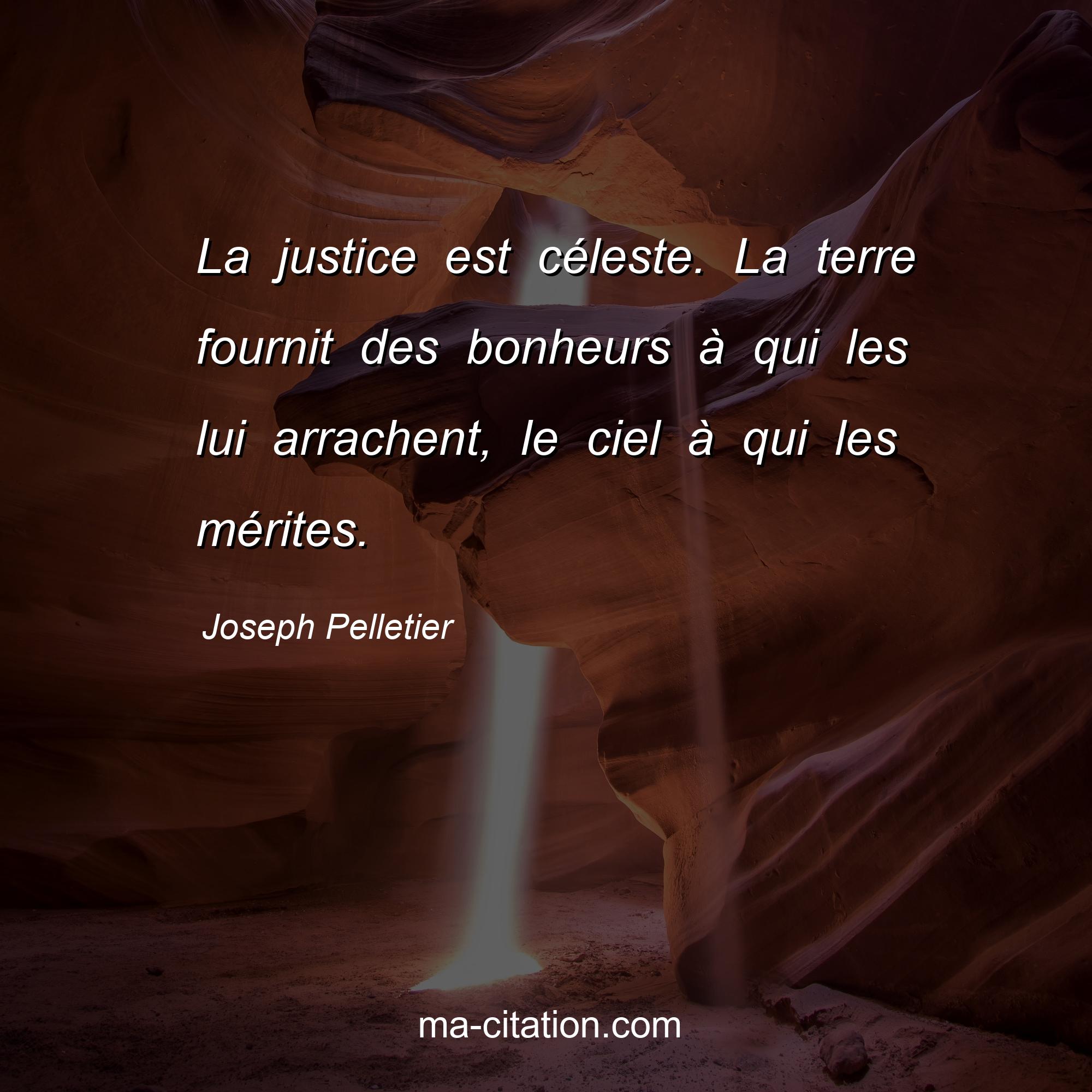 Citation sur la vie de Joseph Pelletier :La justice est céleste. La terre fournit des bonheurs à qui les lui arrachent, le ciel à qui les mérites.
