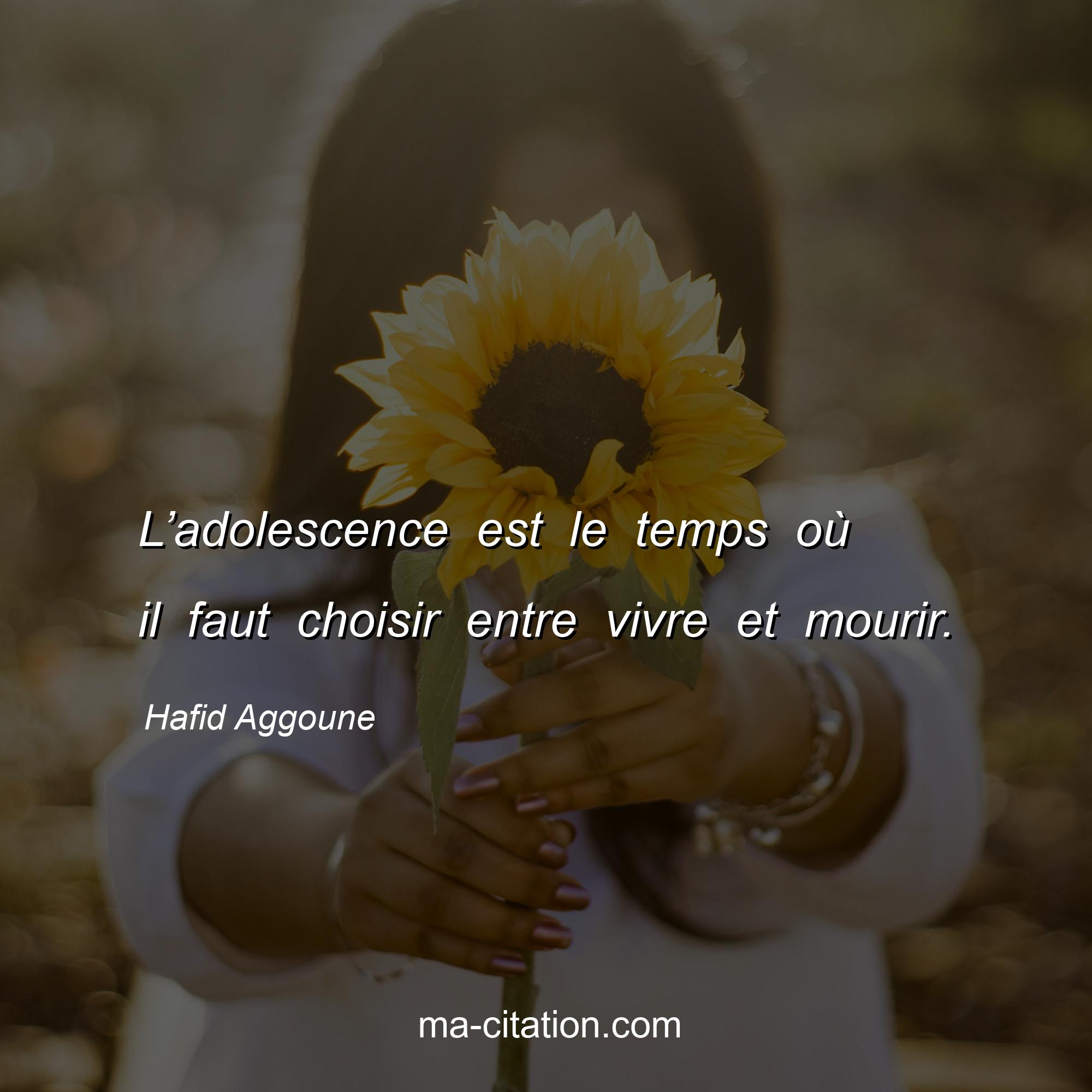 Citation sur la vie de Hafid Aggoune :L’adolescence est le temps où il faut choisir entre vivre et mourir.