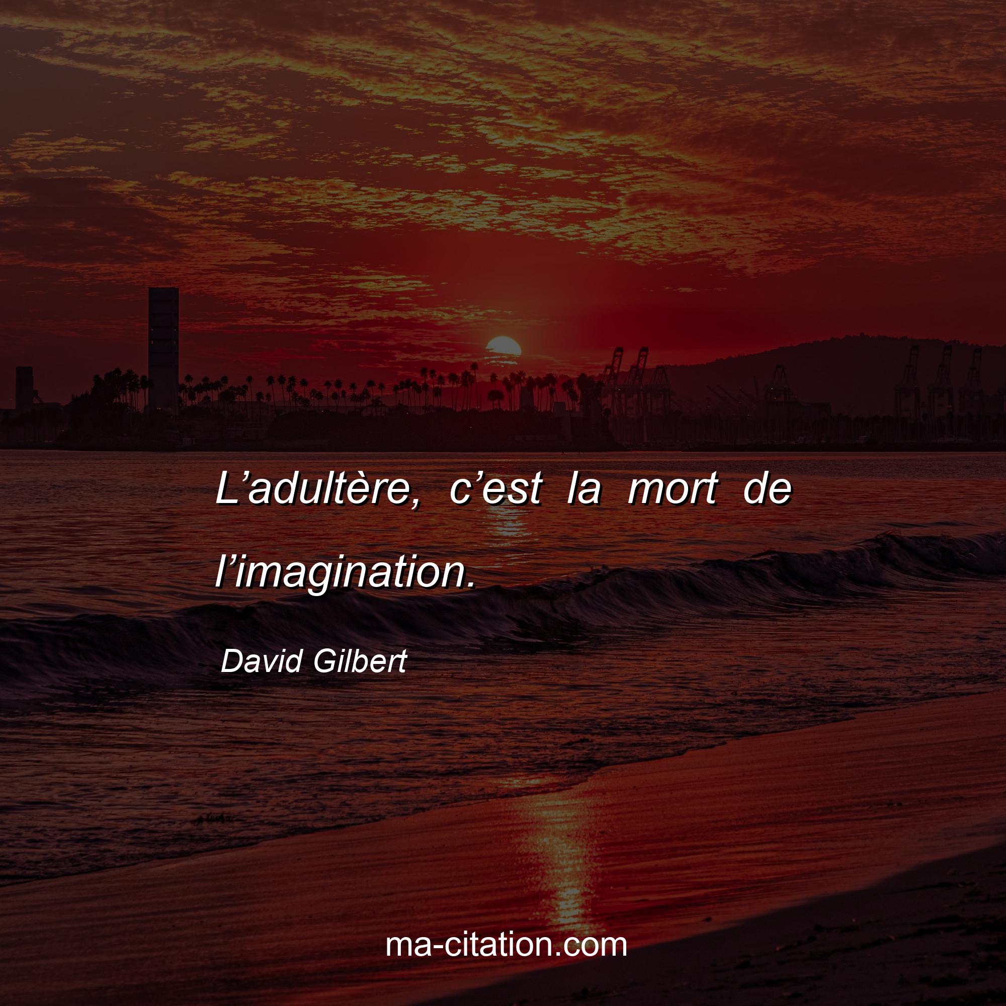 Citation sur la vie de David Gilbert :L’adultère, c’est la mort de l’imagination.