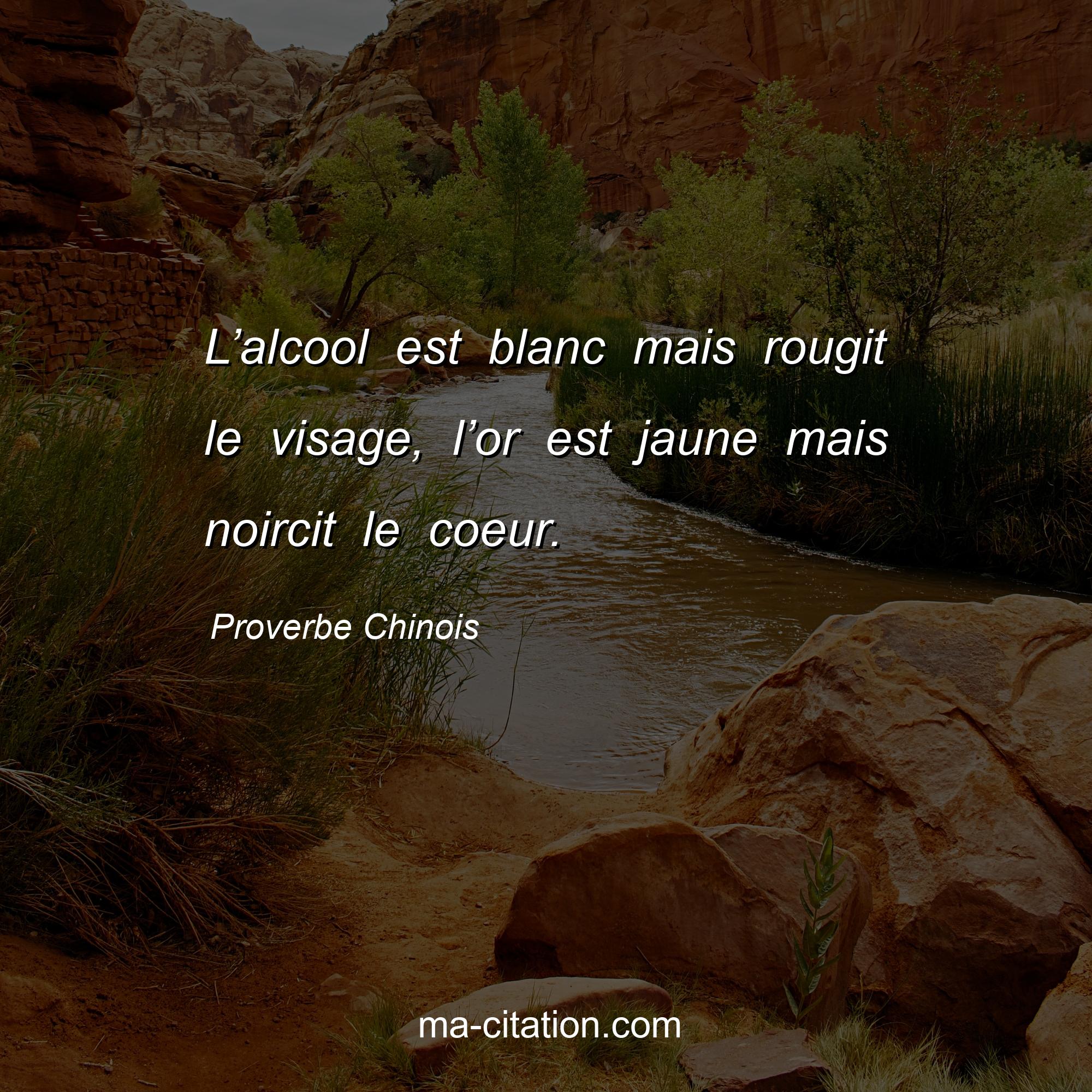 Proverbe Chinois sur la vie :L’alcool est blanc mais rougit le visage, l’or est jaune mais noircit le coeur.
