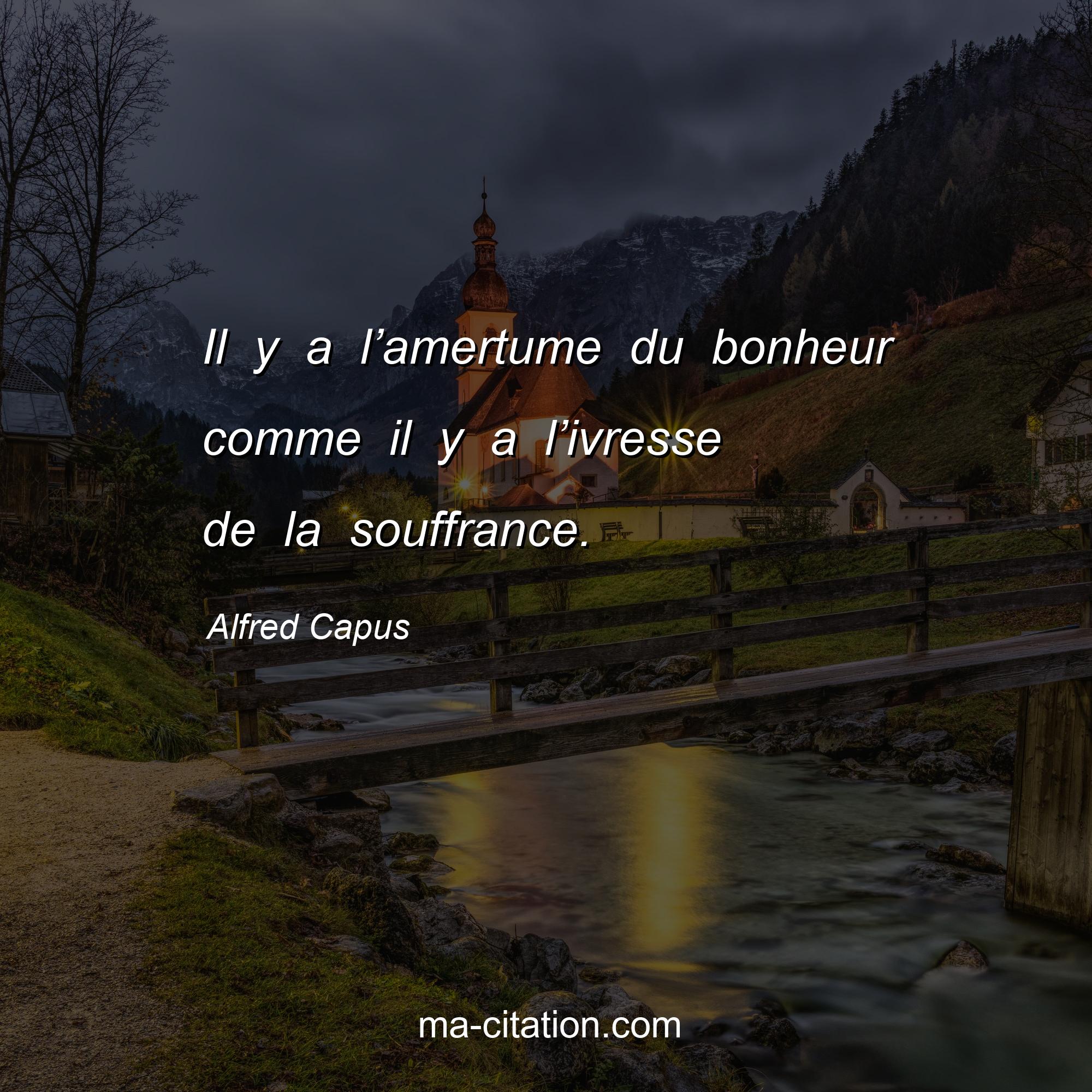 Citation sur la vie d'Alfred Capus :Il y a l’amertume du bonheur comme il y a l’ivresse de la souffrance.