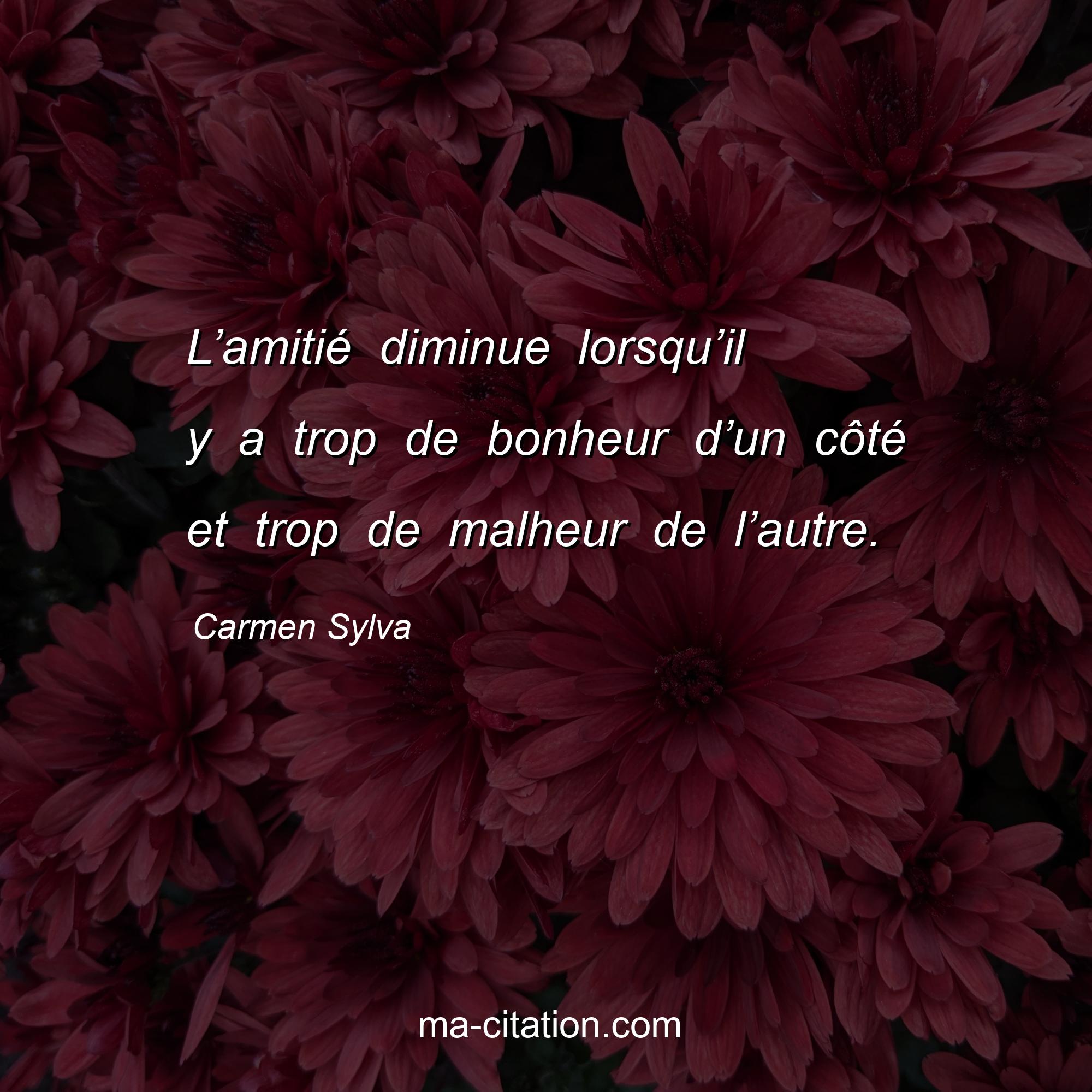 Carmen Sylva est l'auteur de la citation sur la vie "L’amitié diminue lorsqu’il y a trop de bonheur d’un côté et trop de malheur de l’autre.".