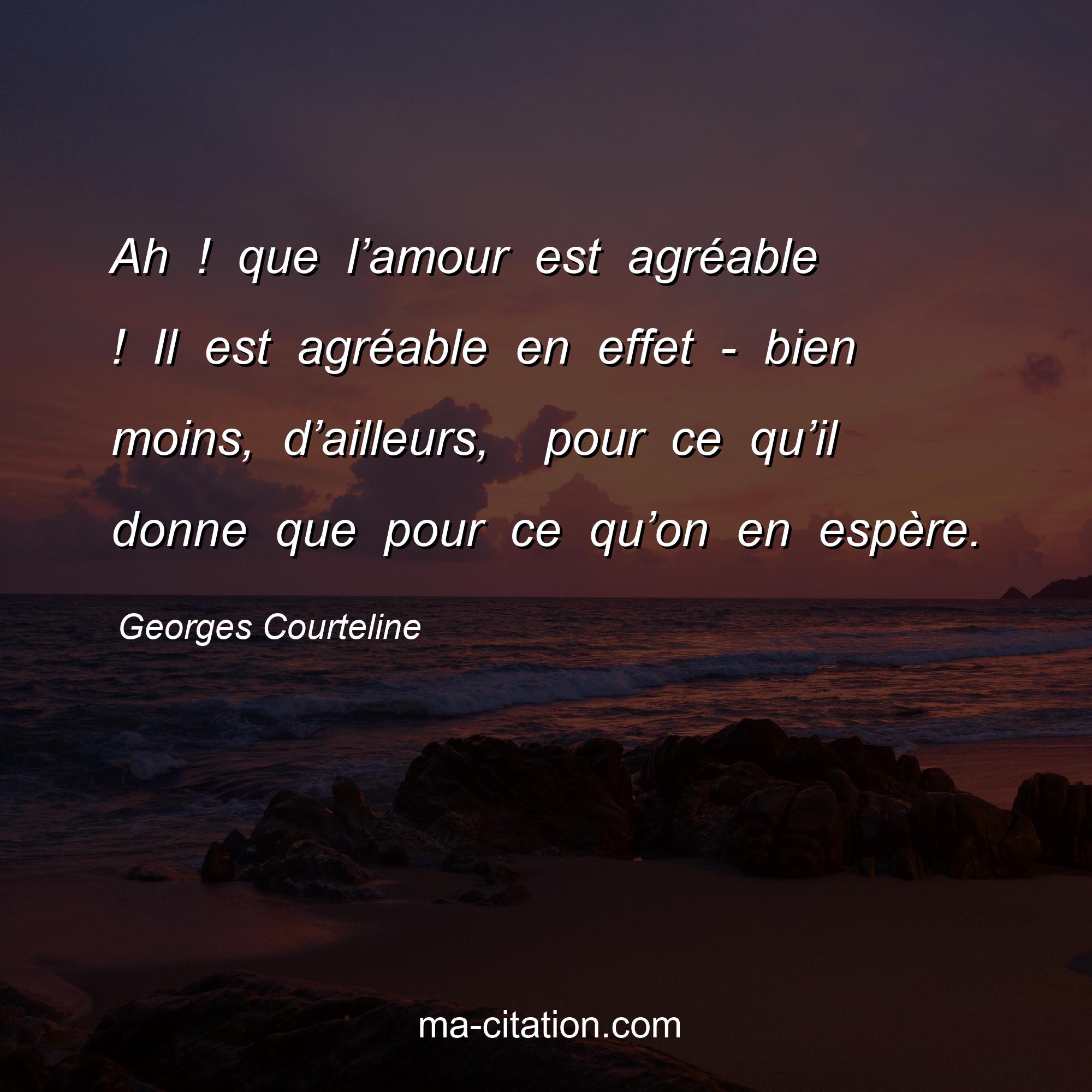 Citation sur la vie de Georges Courteline :Ah ! que l’amour est agréable ! Il est agréable en effet - bien moins, d’ailleurs, pour ce qu’il donne que pour ce qu’on en espère.