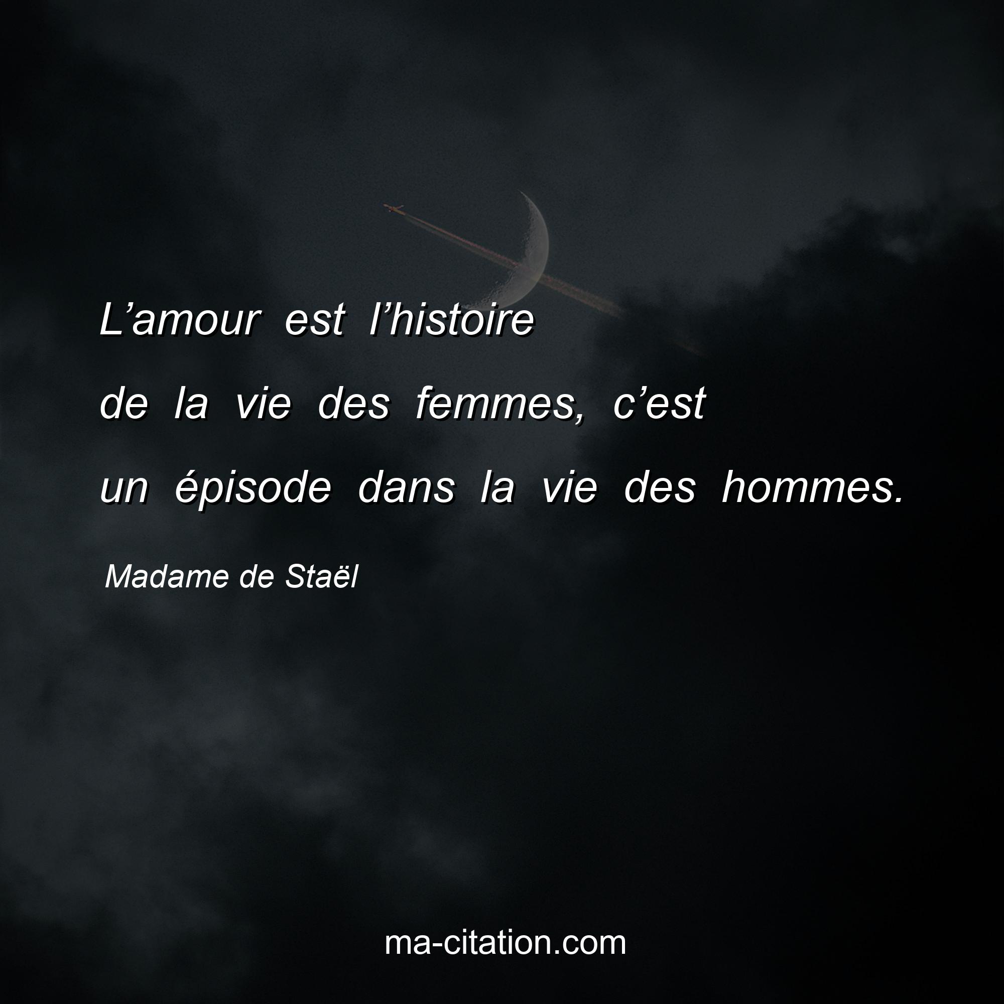 Citation sur la vie de Madame de Staël :L’amour est l’histoire de la vie des femmes, c’est un épisode dans la vie des hommes.