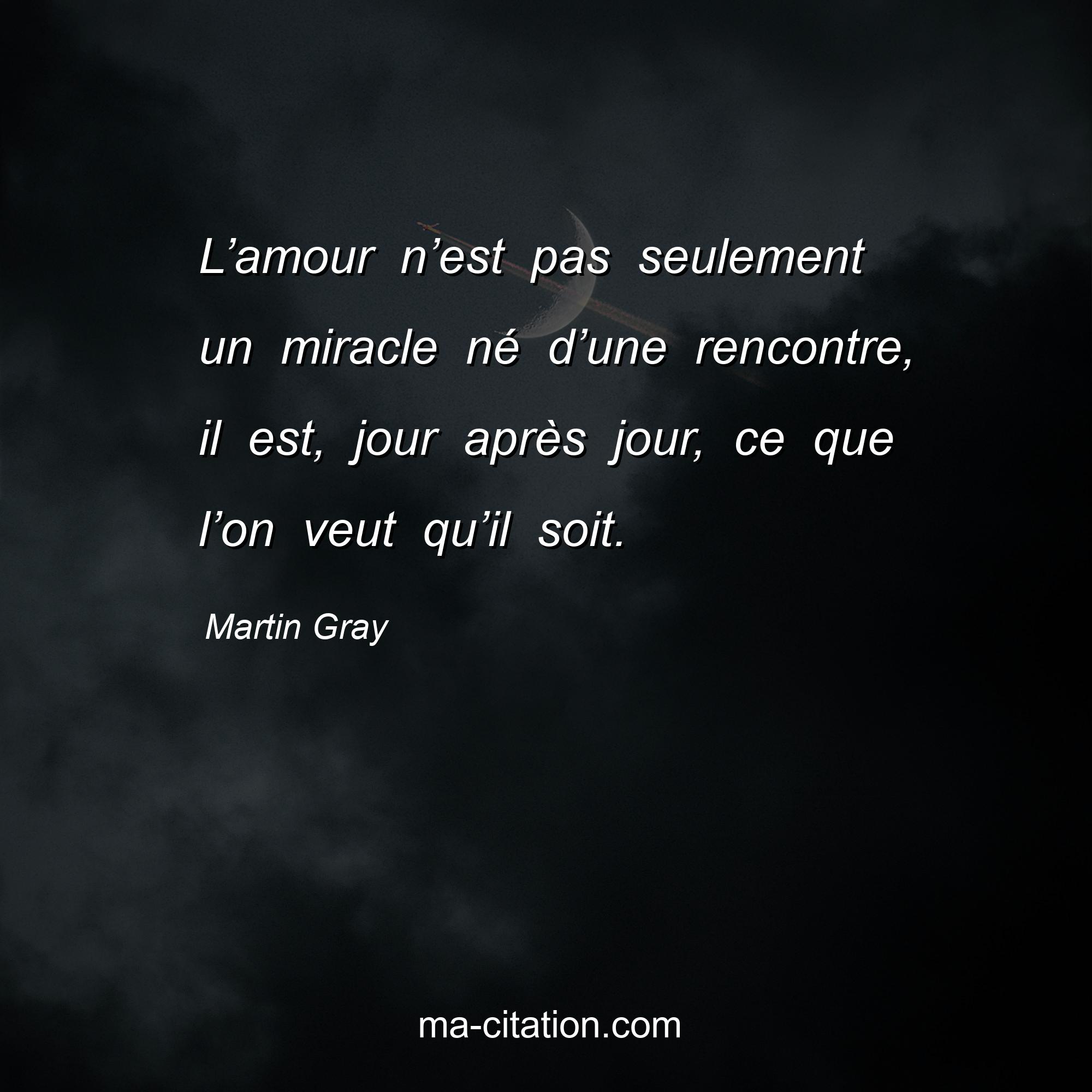 Citation sur la vie de Martin Gray :L’amour n’est pas seulement un miracle né d’une rencontre, il est, jour après jour, ce que l’on veut qu’il soit.