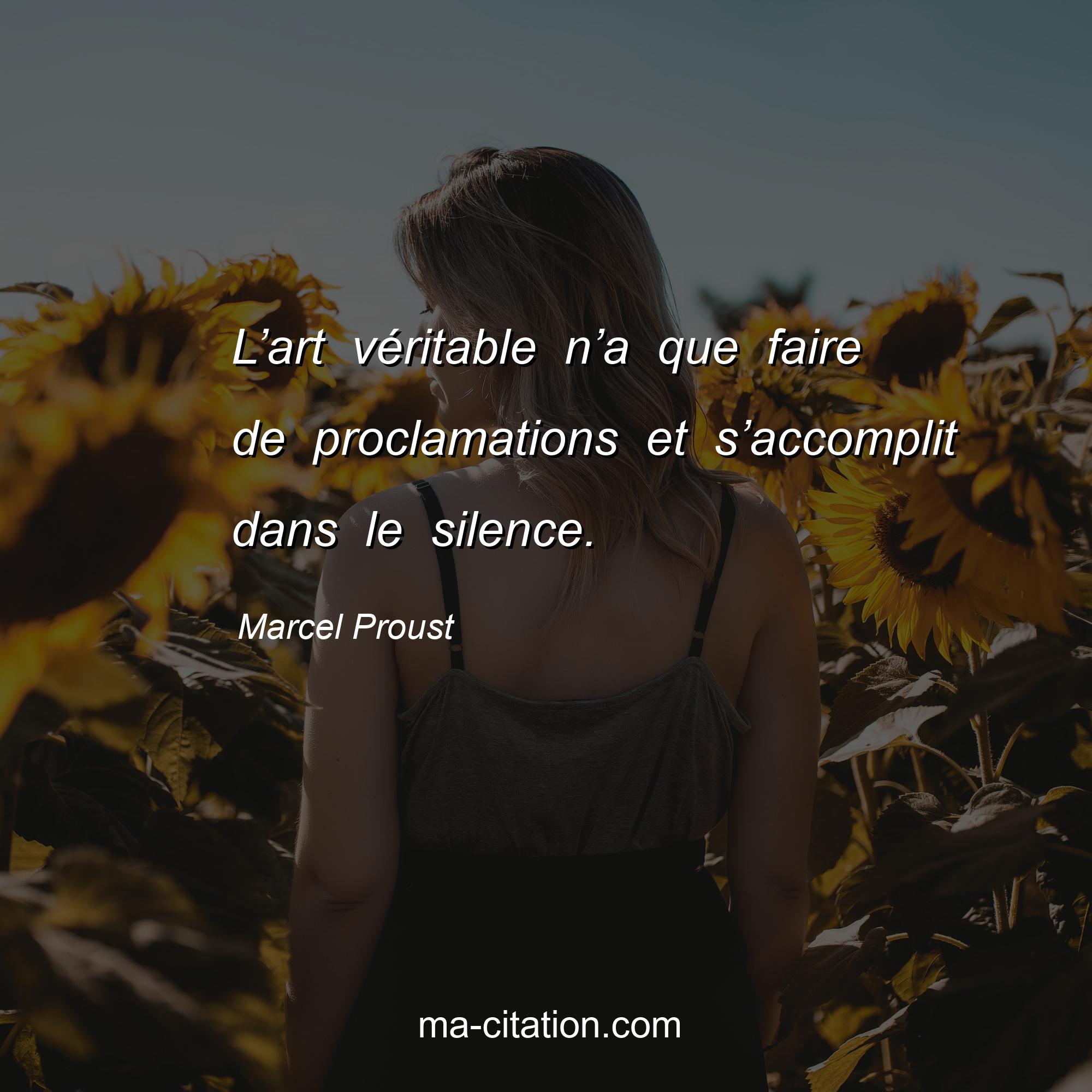 Citation sur la vie de Marcel Proust :L’art véritable n’a que faire de proclamations et s’accomplit dans le silence.