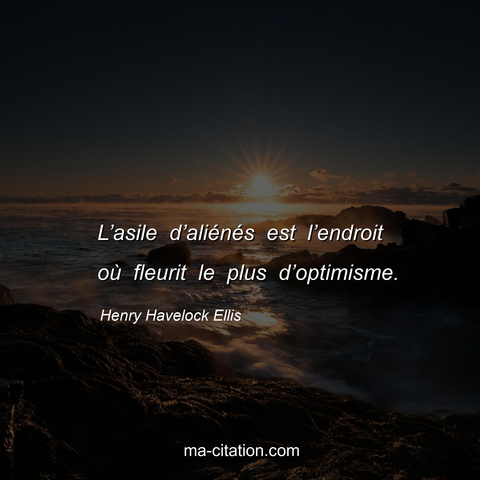 Citation sur la vie de Henry Havelock Ellis :L’asile d’aliénés est l’endroit où fleurit le plus d’optimisme.