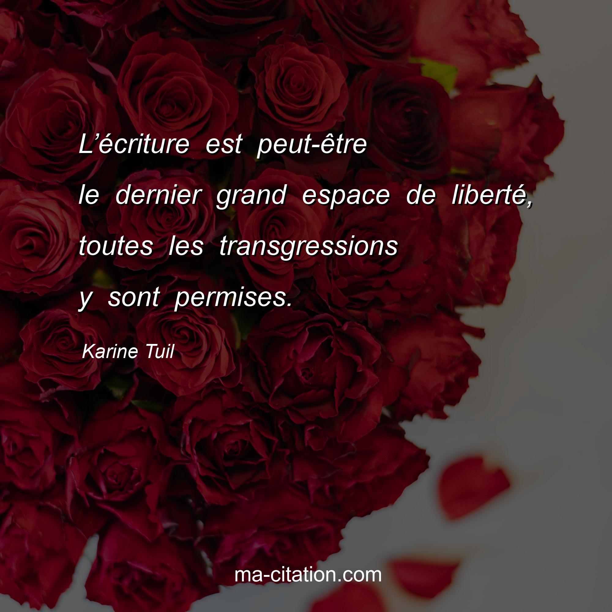 Citation sur la vie de Karine Tuil :L’écriture est peut-être le dernier grand espace de liberté, toutes les transgressions y sont permises.