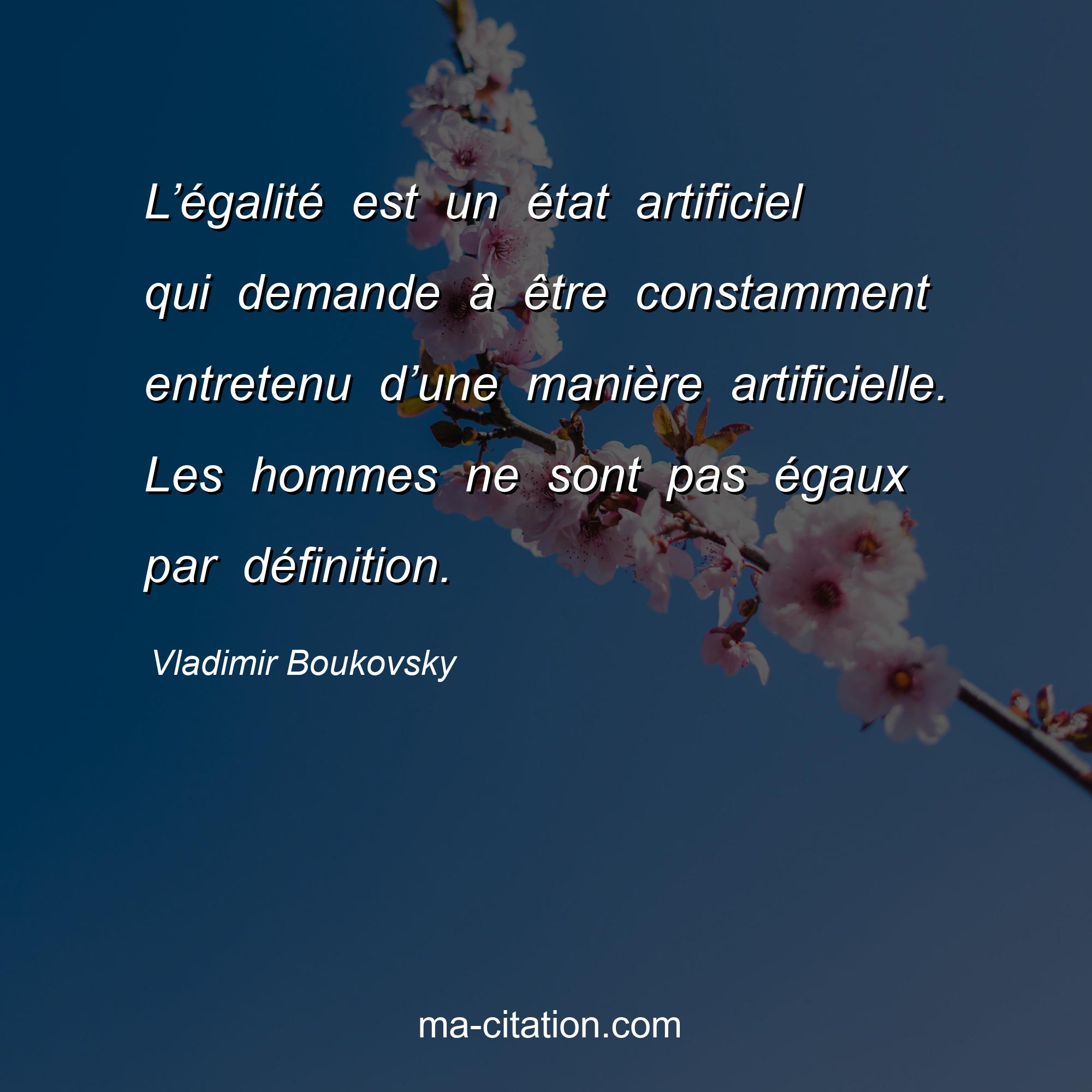Citation sur la vie de Vladimir Boukovsky :L’égalité est un état artificiel qui demande à être constamment entretenu d’une manière artificielle. Les hommes ne sont pas égaux par définition.