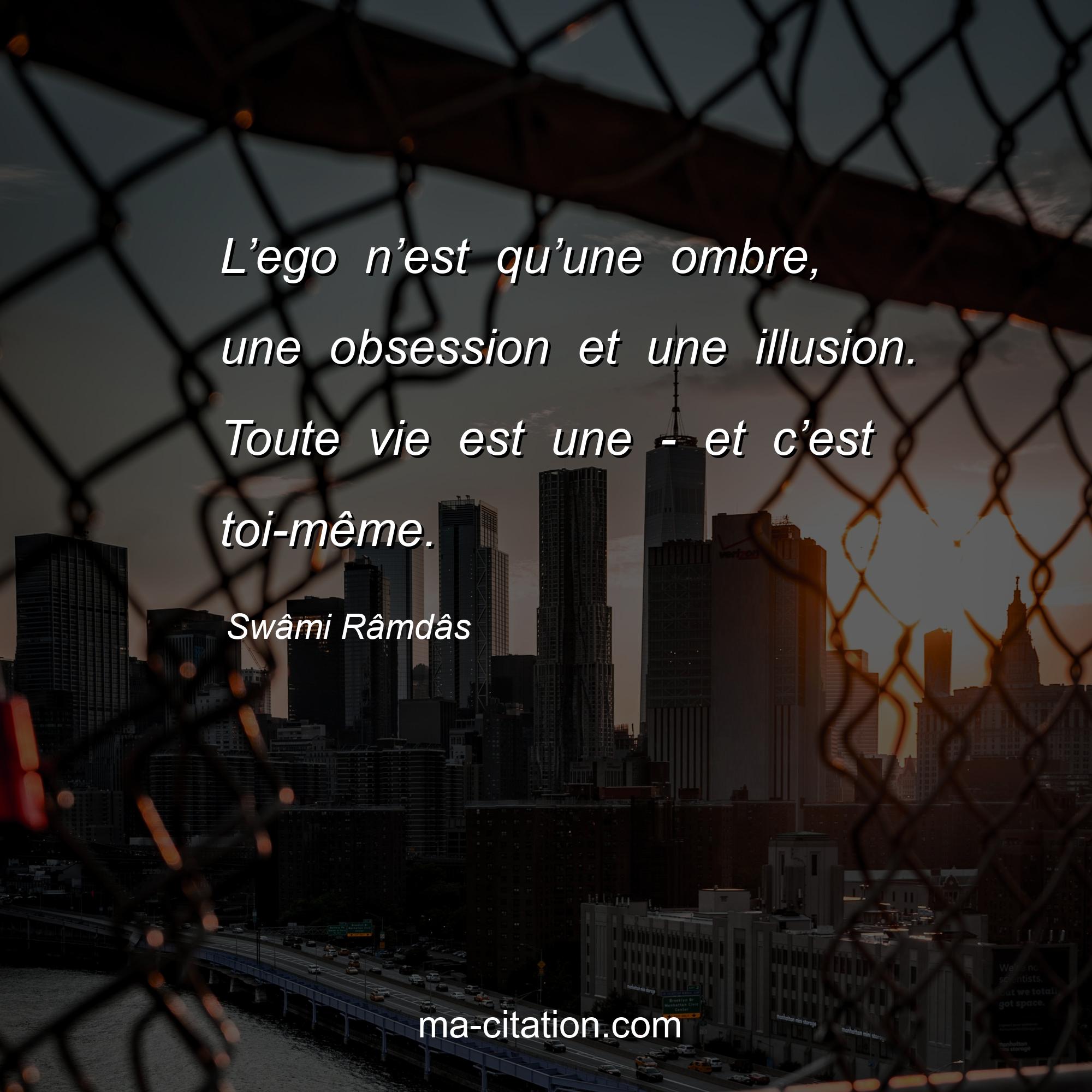Swâmi Râmdâs est l'auteur de la citation sur la vie "L’ego n’est qu’une ombre, une obsession et une illusion. Toute vie est une - et c’est toi-même.".